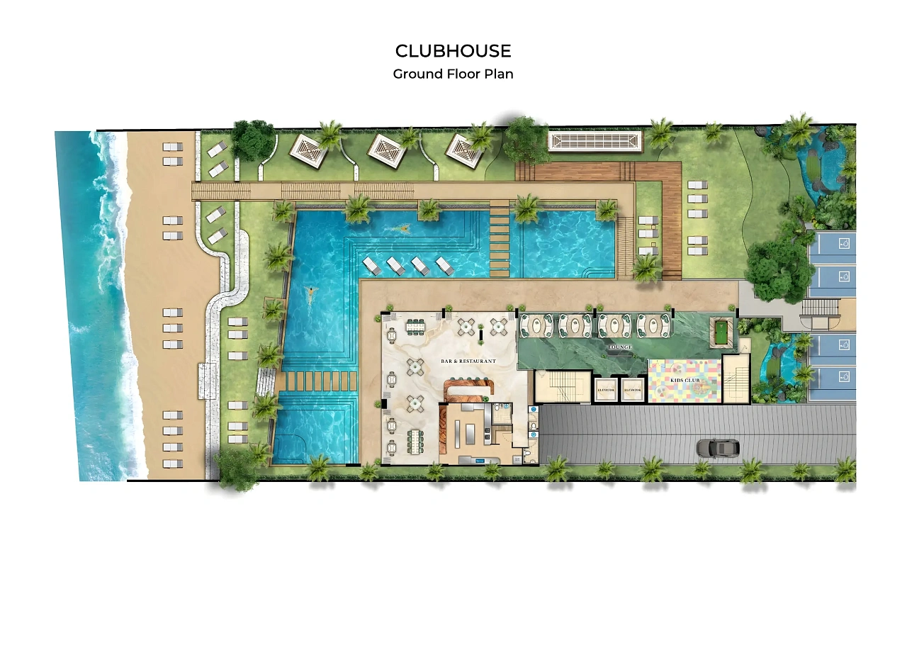 - 5-звездочный комфорт: 4-этажный клубхаус с океанским бассейном, кинотеатром, фитнесом 24/7 и спа-зоной (онсен, сауна).