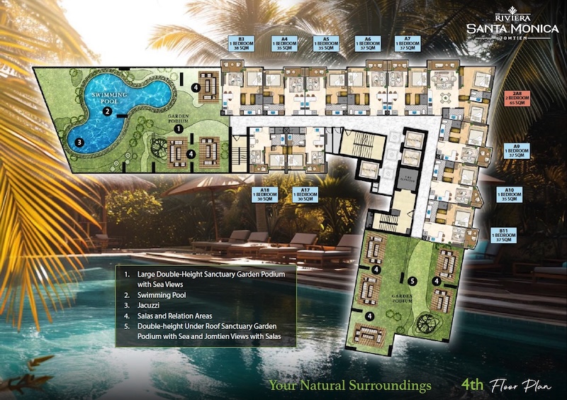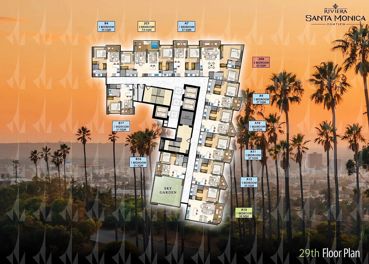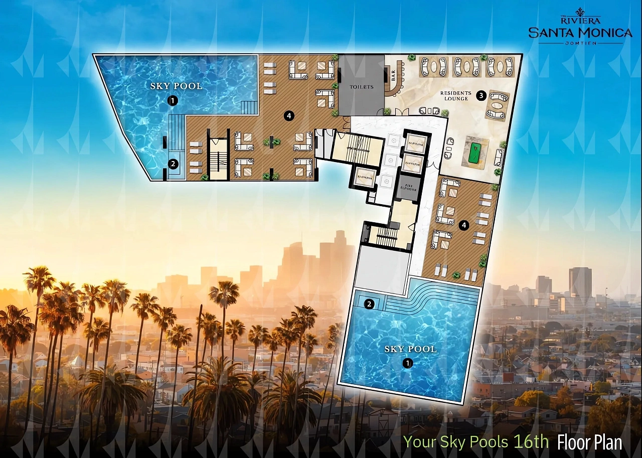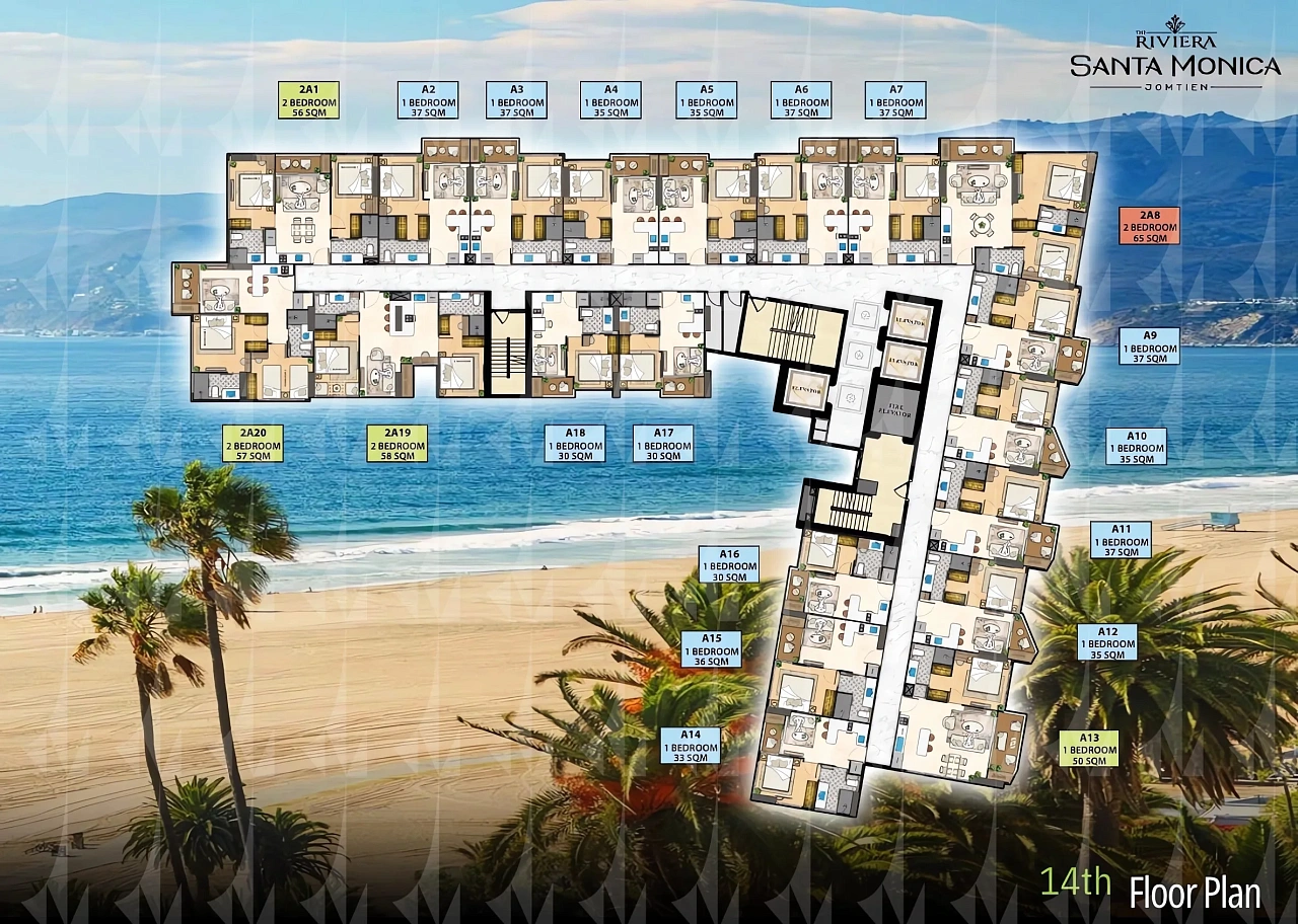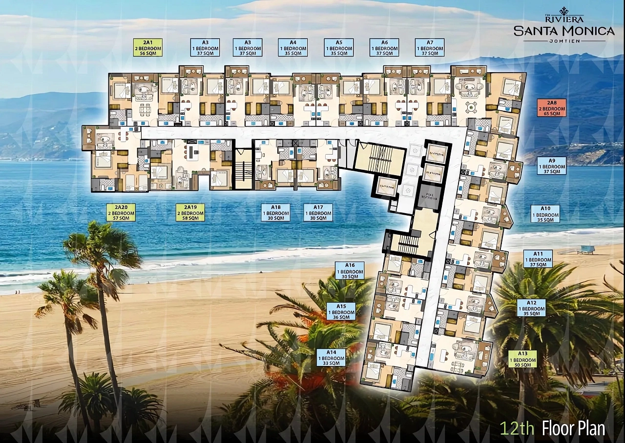 The Riviera Santa Monica — это сногсшибательная новая 34-этажная башня (включает 446 резиденций класса люкс) от именитого лидера рынка Riviera Group. Комплекс расположен в тихой комфортной зоне пляжа Джомтьен и предлагает феноменально богатую инфраструктуру, 100% панорамные виды на море и роскошный калифорнийский стиль жизни. - Каковы стартовые цены на квартиры в этом премиум-комплексе?