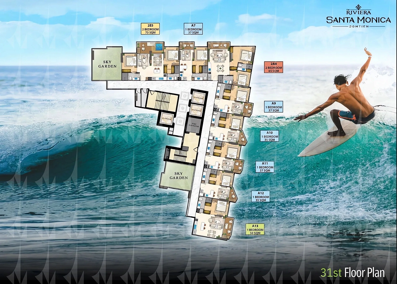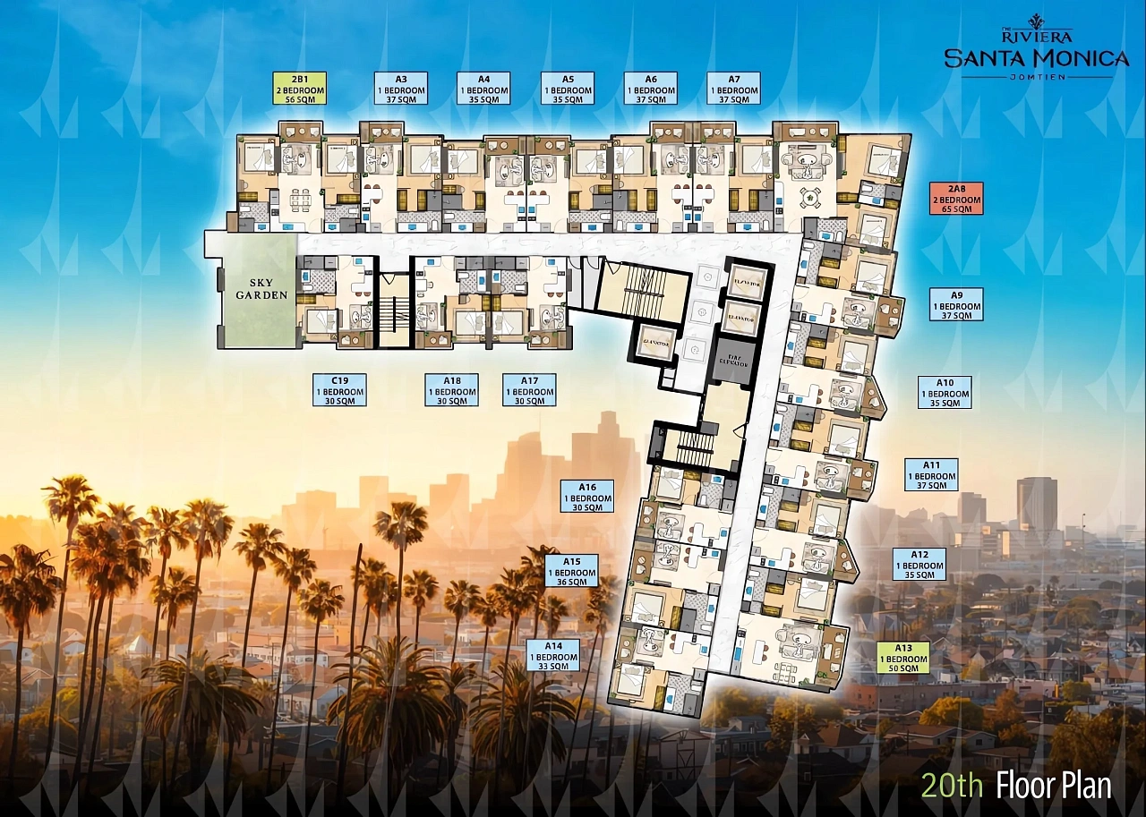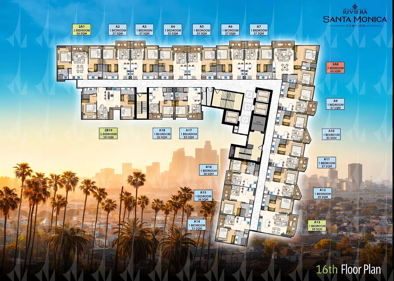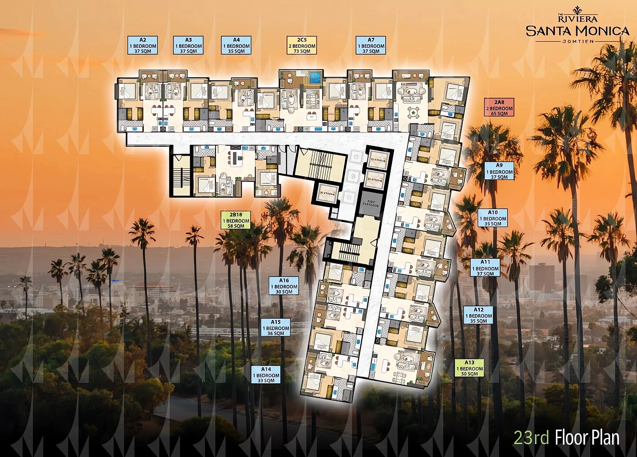 The Riviera Santa Monica — это сногсшибательная новая 34-этажная башня (включает 446 резиденций класса люкс) от именитого лидера рынка Riviera Group. Комплекс расположен в тихой комфортной зоне пляжа Джомтьен и предлагает феноменально богатую инфраструктуру, 100% панорамные виды на море и роскошный калифорнийский стиль жизни. - Каковы стартовые цены на квартиры в этом премиум-комплексе?