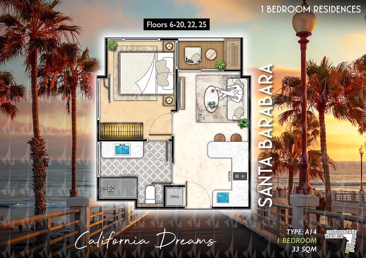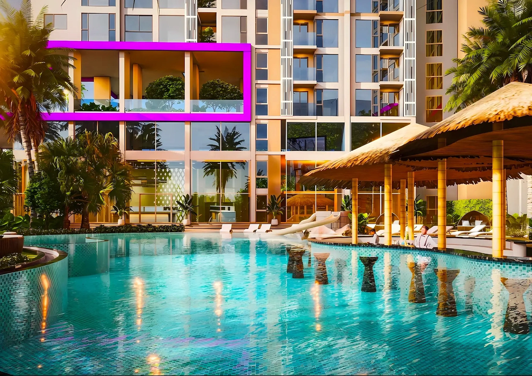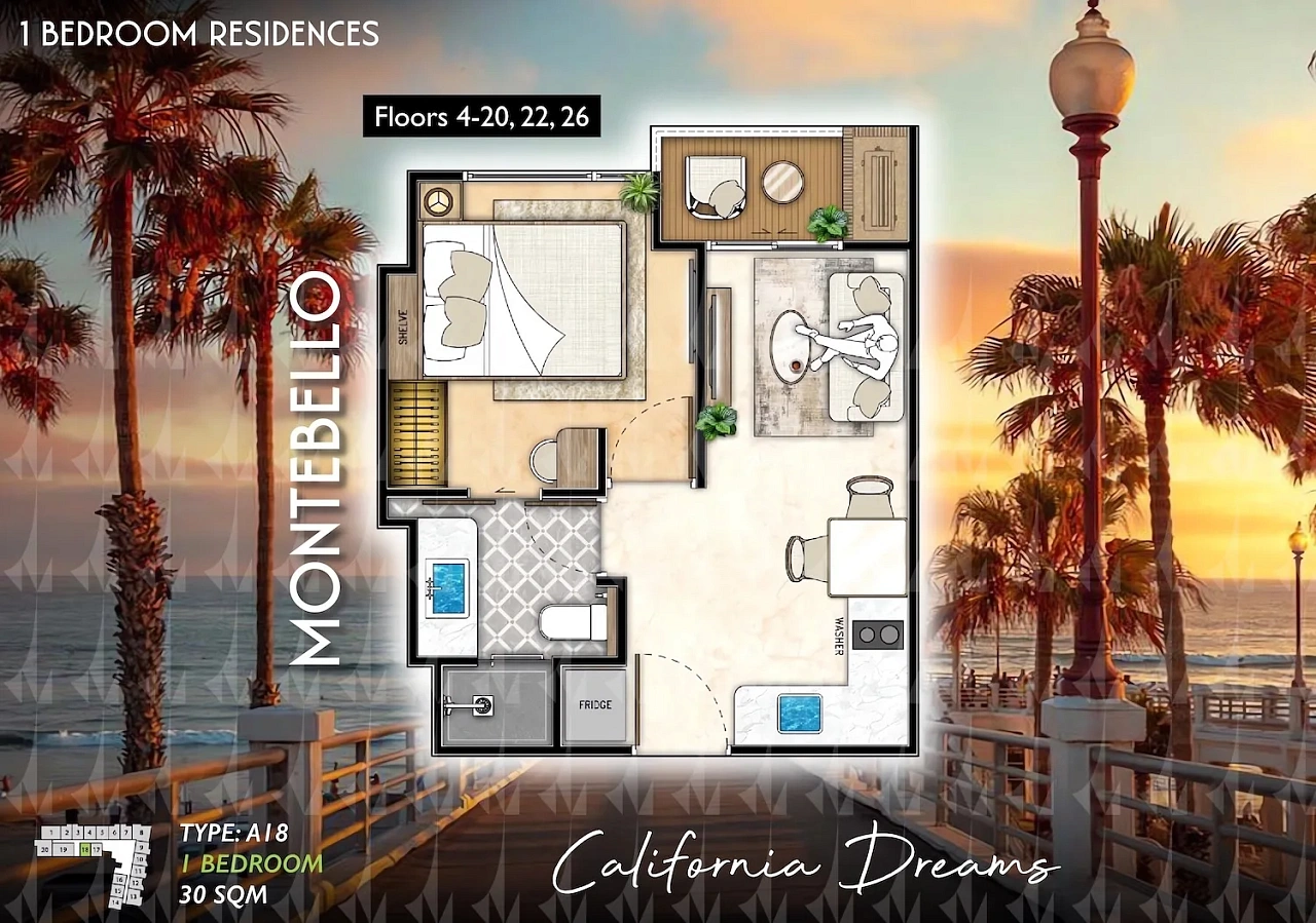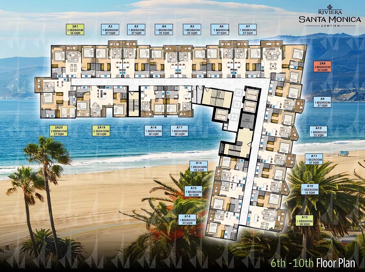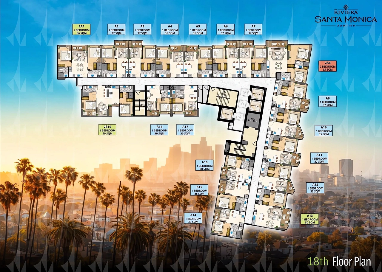 The Riviera Santa Monica — это сногсшибательная новая 34-этажная башня (включает 446 резиденций класса люкс) от именитого лидера рынка Riviera Group. Комплекс расположен в тихой комфортной зоне пляжа Джомтьен и предлагает феноменально богатую инфраструктуру, 100% панорамные виды на море и роскошный калифорнийский стиль жизни. - Каковы стартовые цены на квартиры в этом премиум-комплексе?