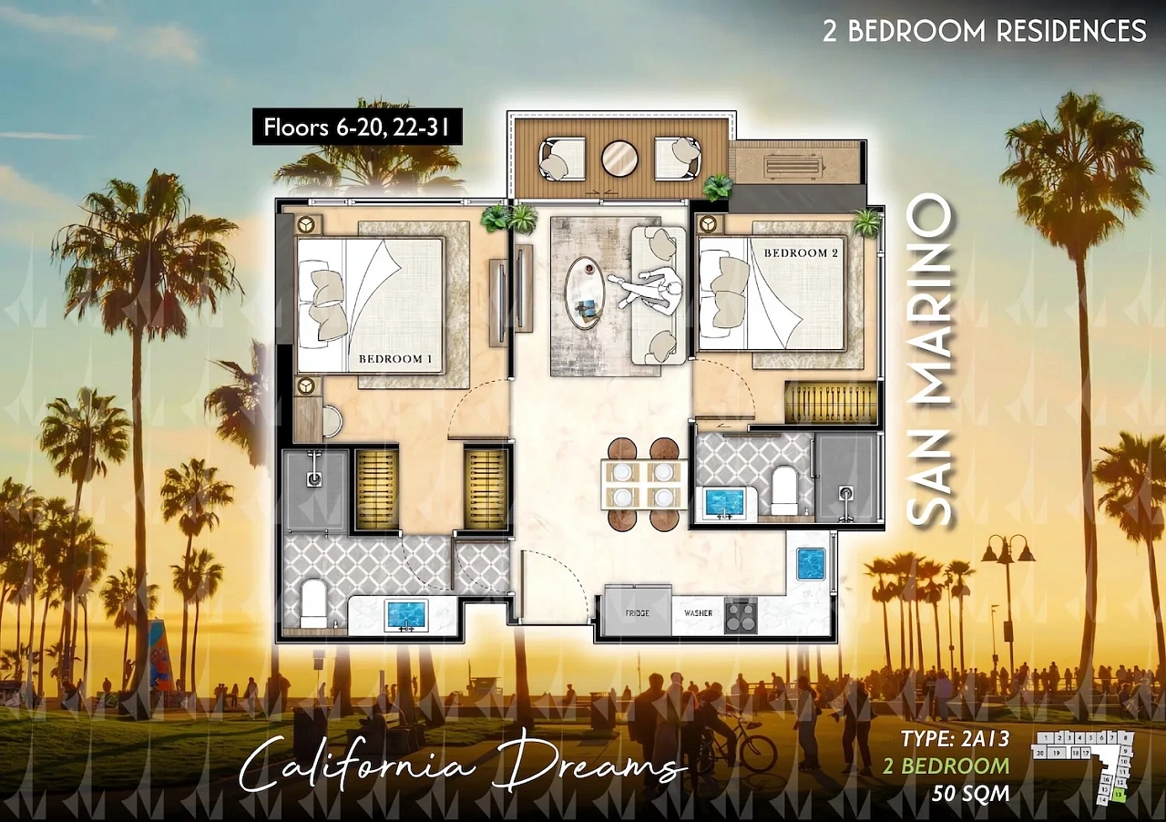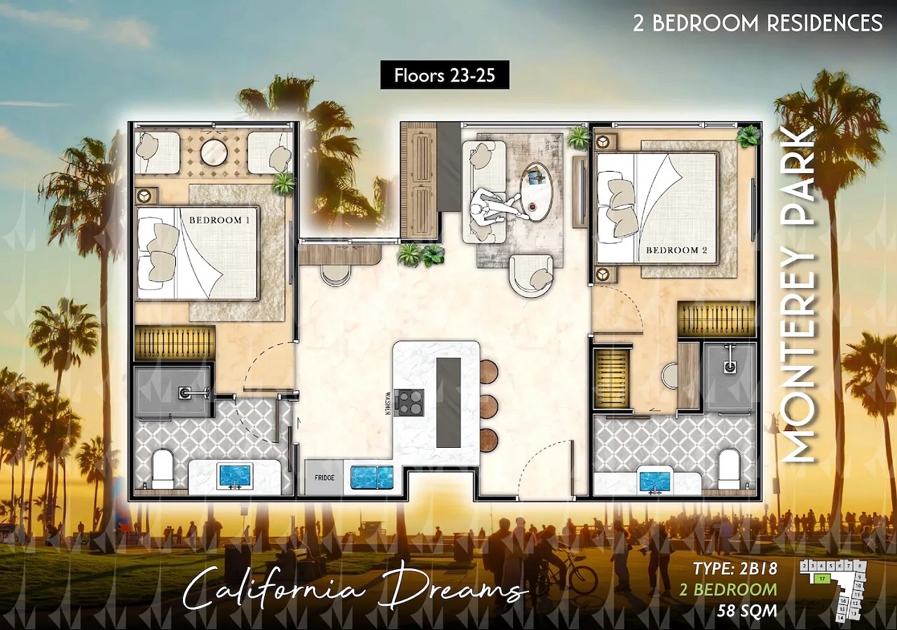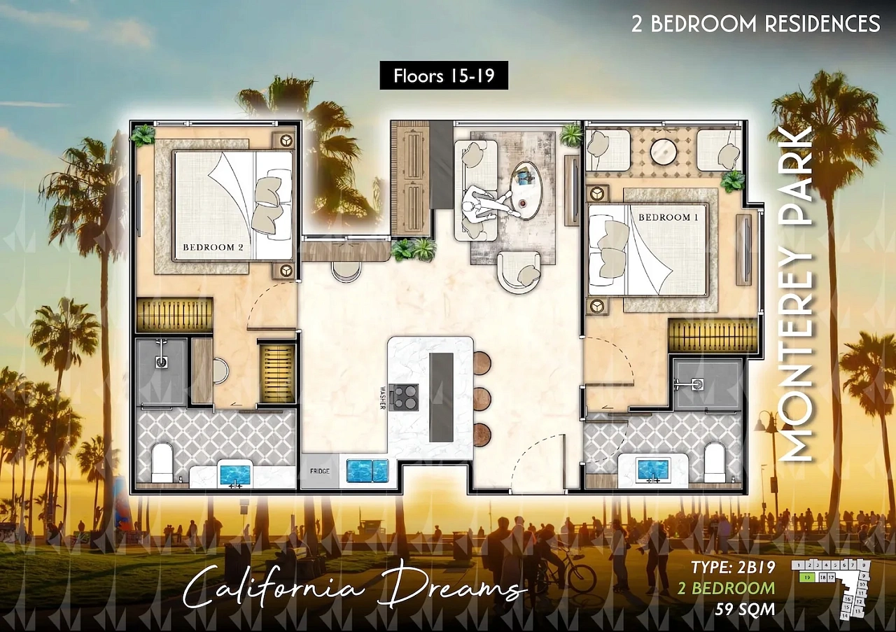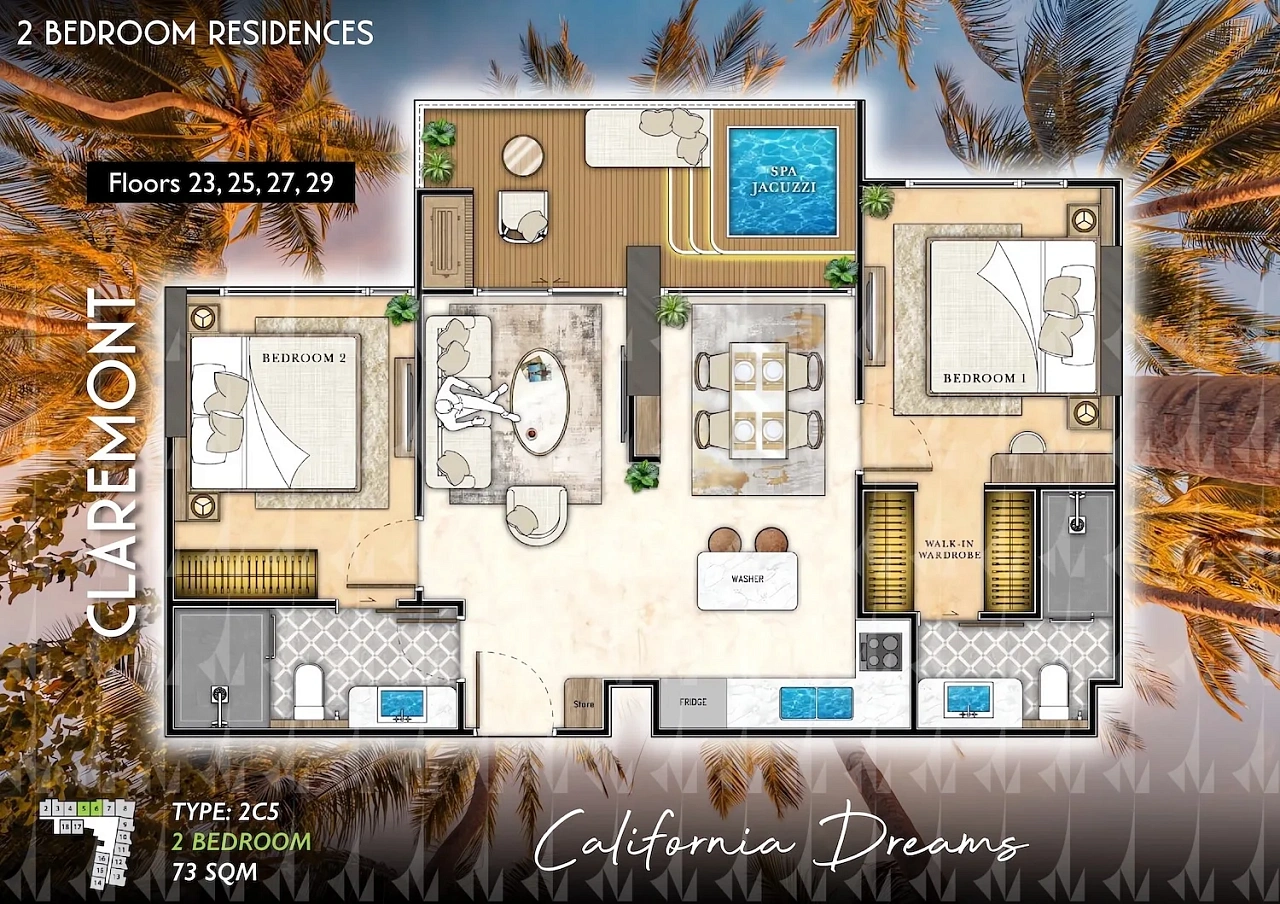 The Riviera Santa Monica — это сногсшибательная новая 34-этажная башня (включает 446 резиденций класса люкс) от именитого лидера рынка Riviera Group. Комплекс расположен в тихой комфортной зоне пляжа Джомтьен и предлагает феноменально богатую инфраструктуру, 100% панорамные виды на море и роскошный калифорнийский стиль жизни. - Каковы стартовые цены на квартиры в этом премиум-комплексе?