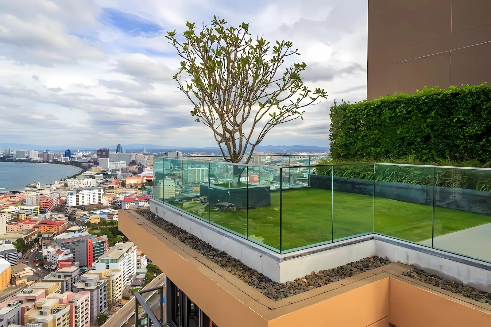 - Панорамные виды: Полностью меблированные апартаменты (22–62.64 кв.м) с видами на мыс Бали Хай и пляж Паттайи, выполненные в современном стиле.