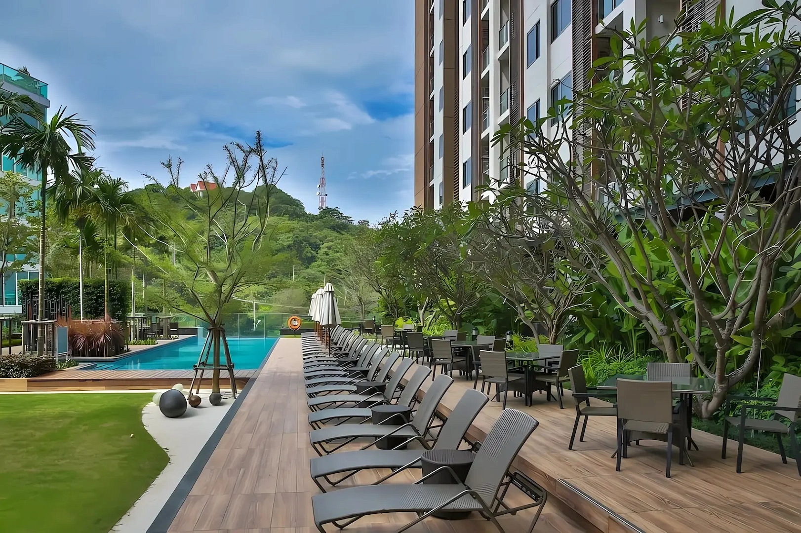 - Престижное расположение: 700 м от пляжа Пратамнак, рядом с пирсом Бали Хай и центром Паттайи, с удобным доступом к достопримечательностям.