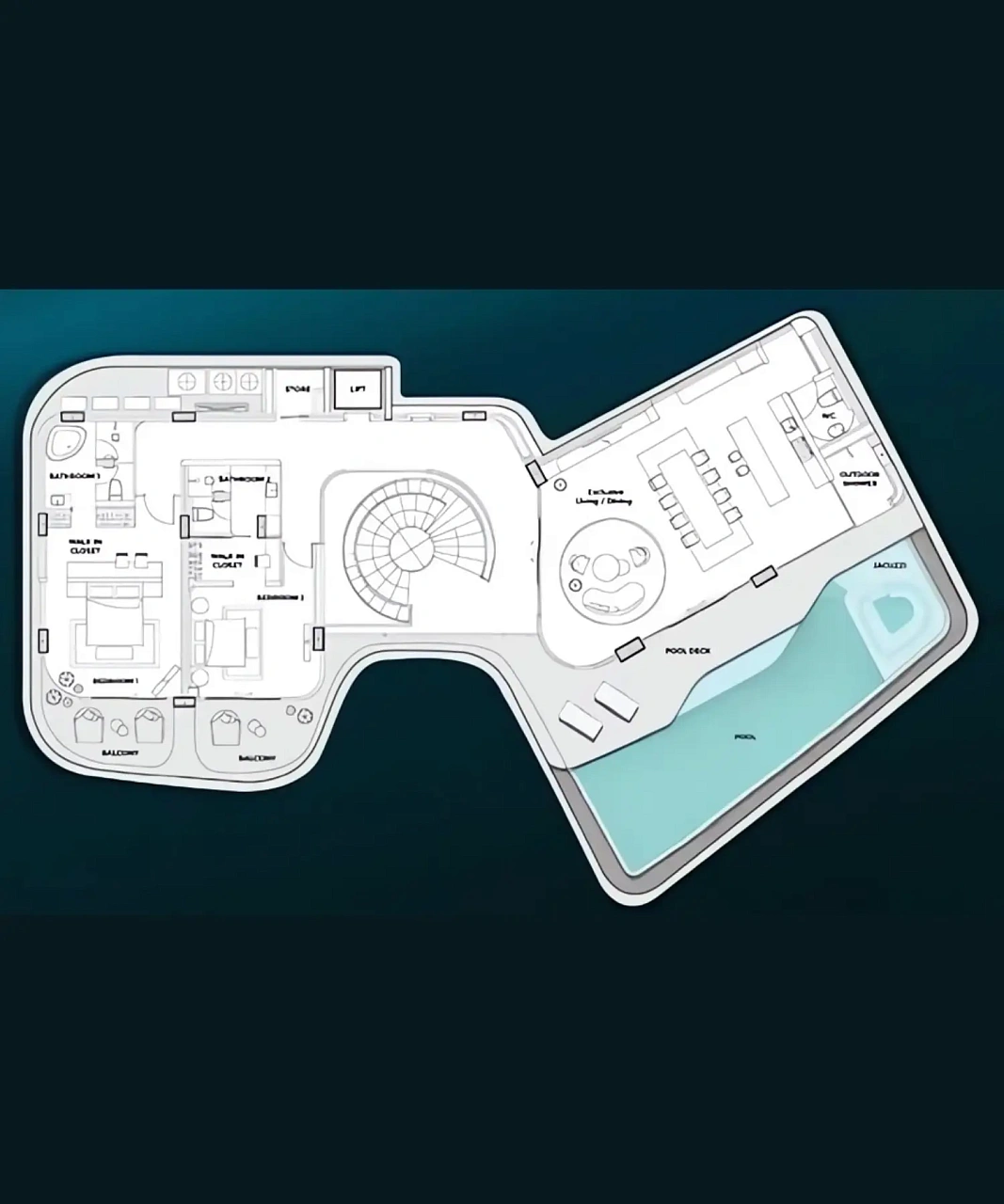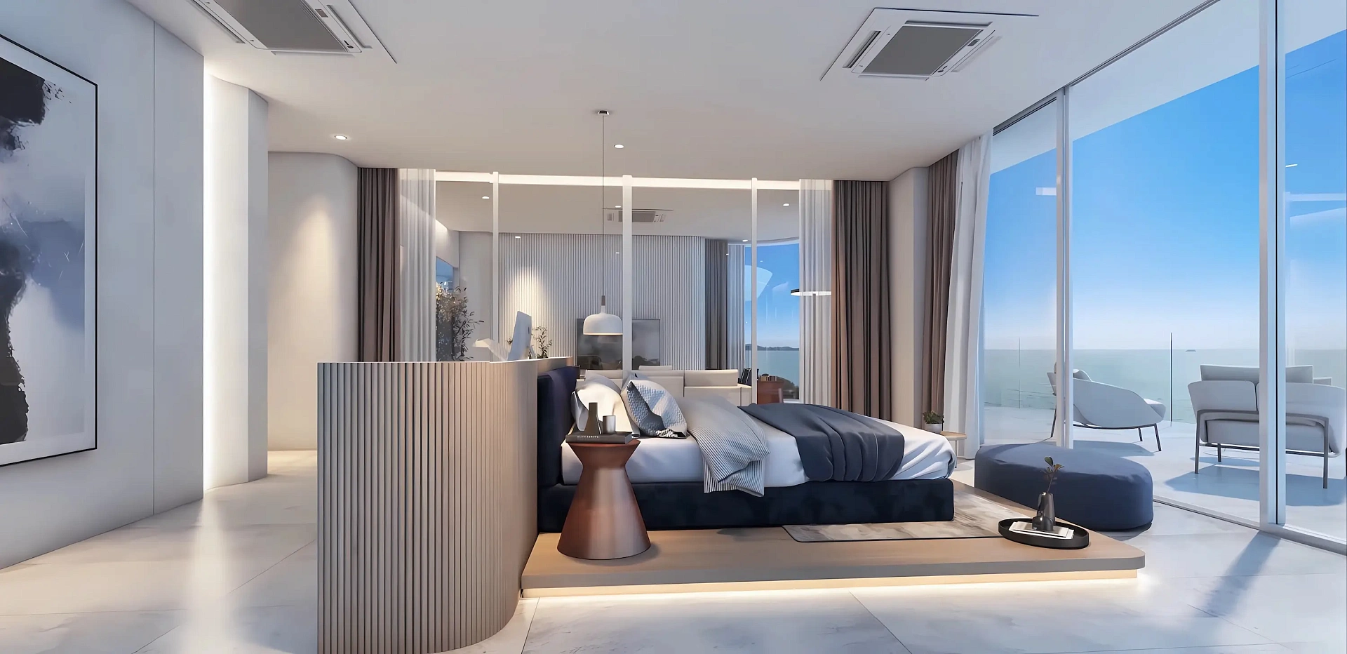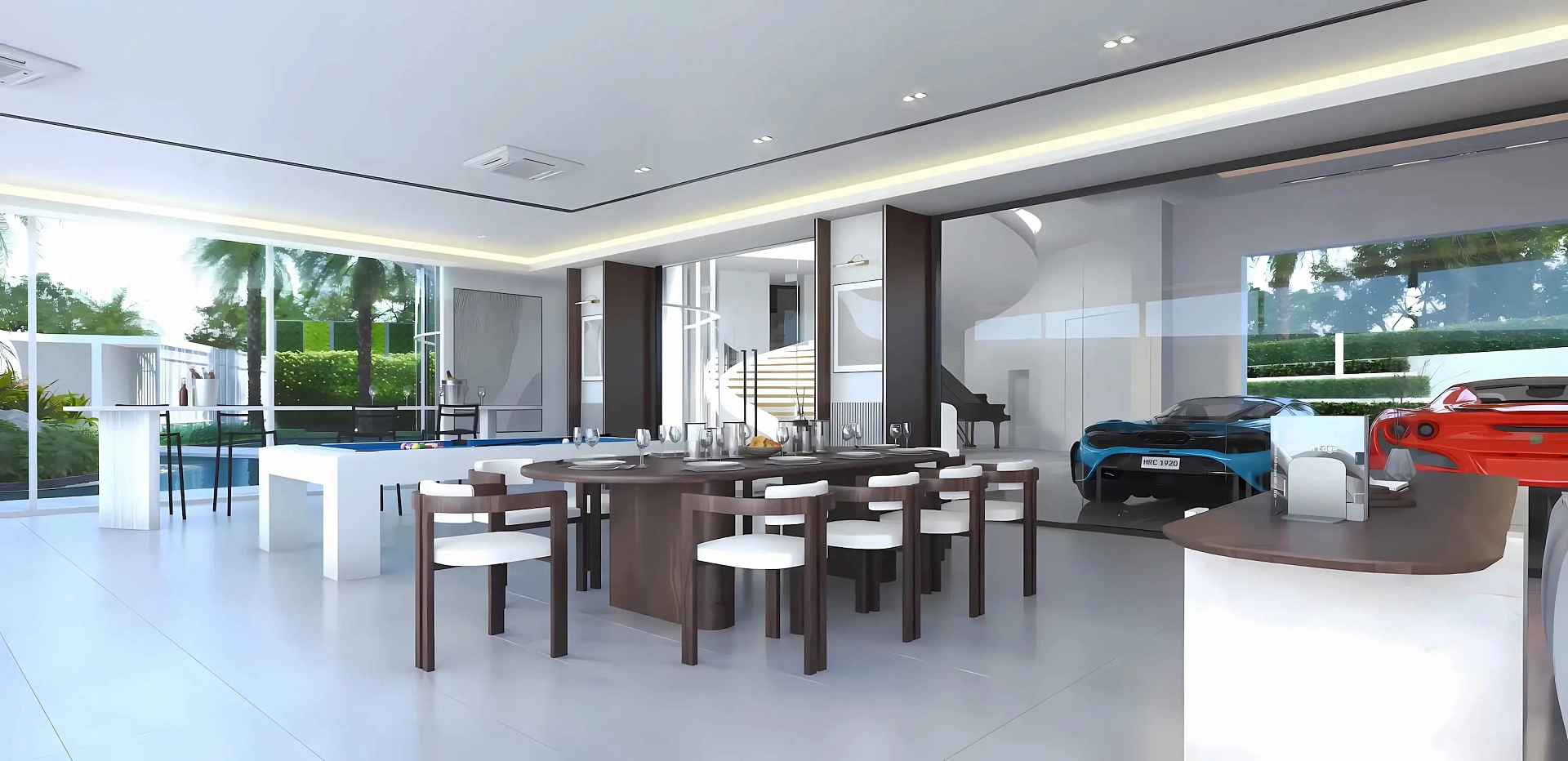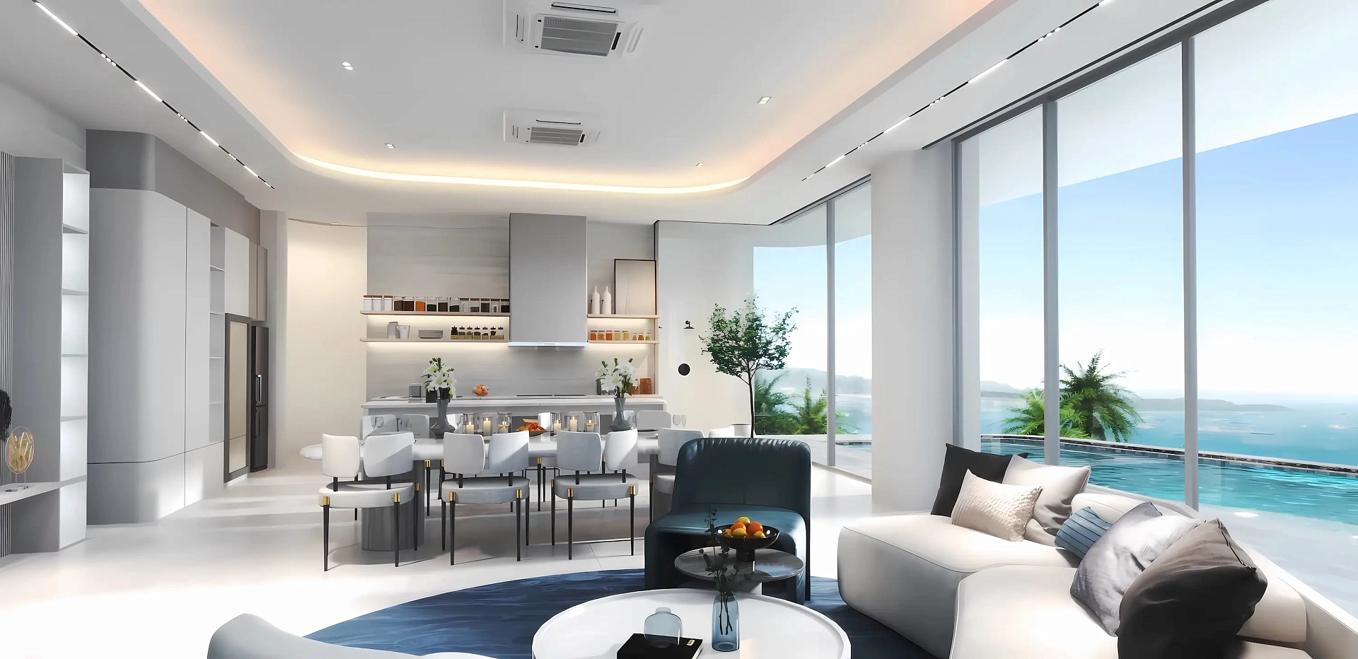 - Инновационная планировка: Вилла с тремя спальнями, включающая просторную гостиную, кухню с современной техникой, индивидуальные ванные, частный бассейн, террасу, системы кондиционирования и высокоскоростной интернет, с дизайном, вдохновленным символом бесконечности для безграничного комфорта.