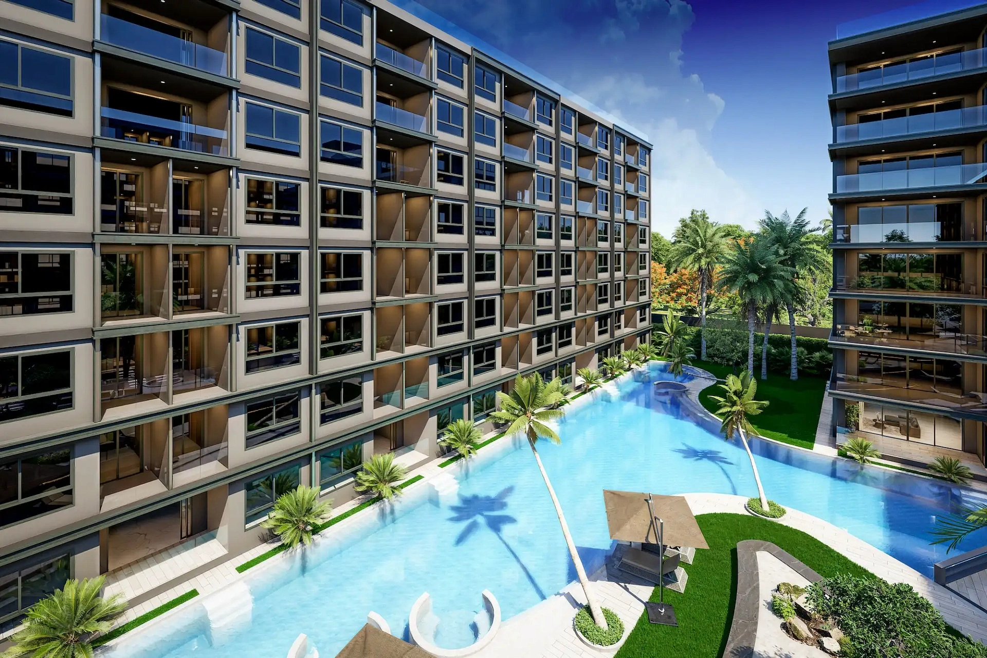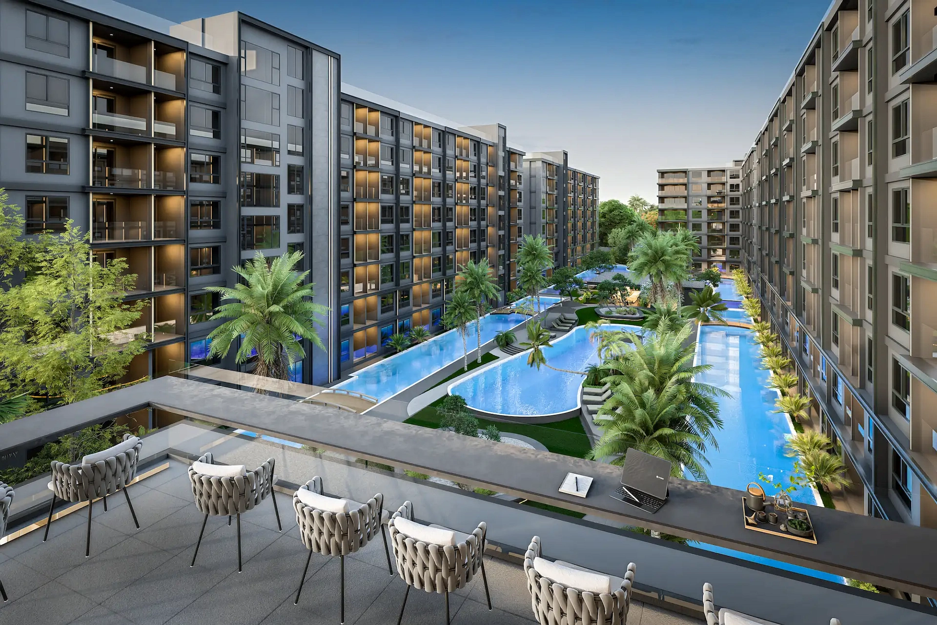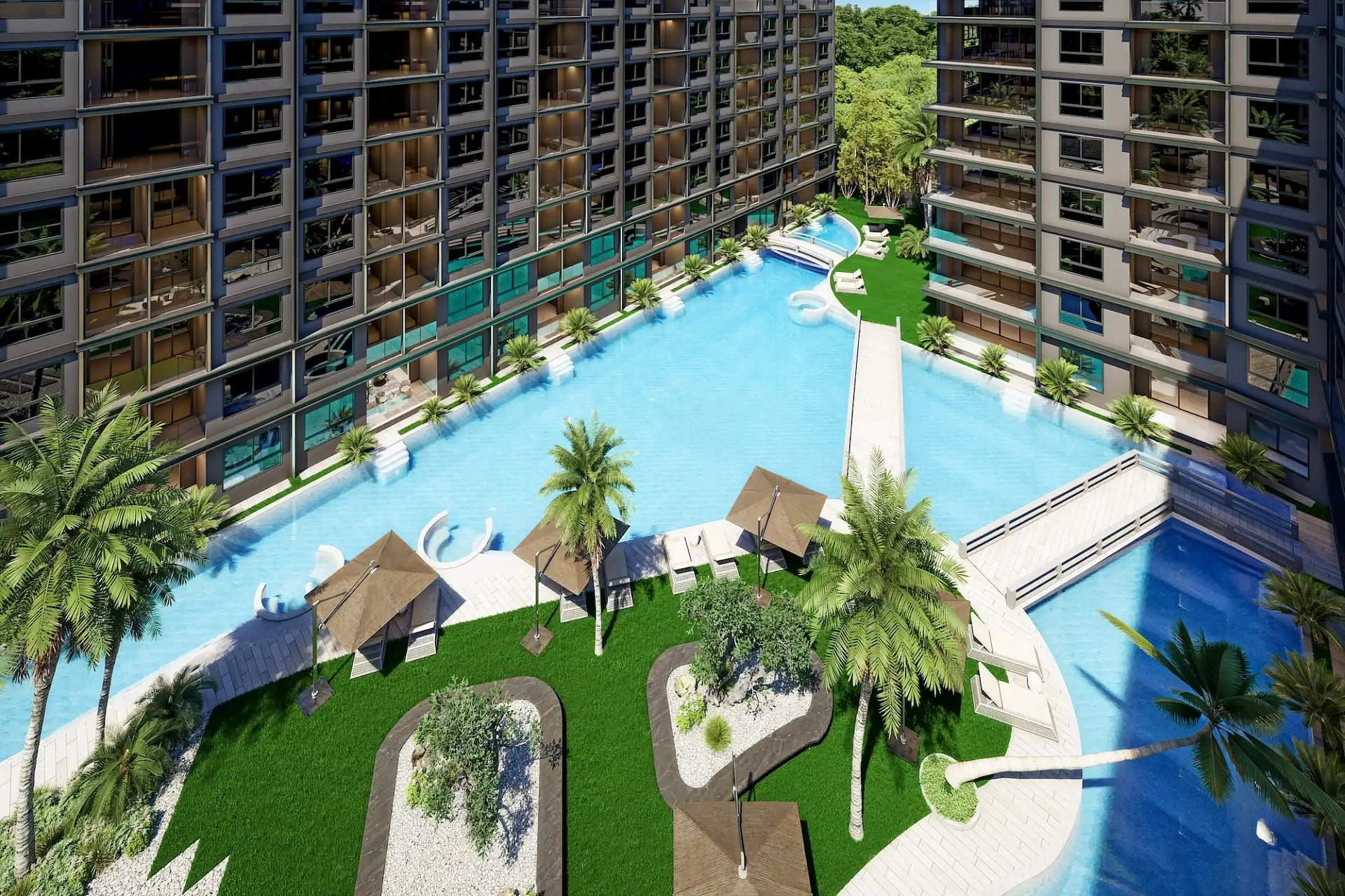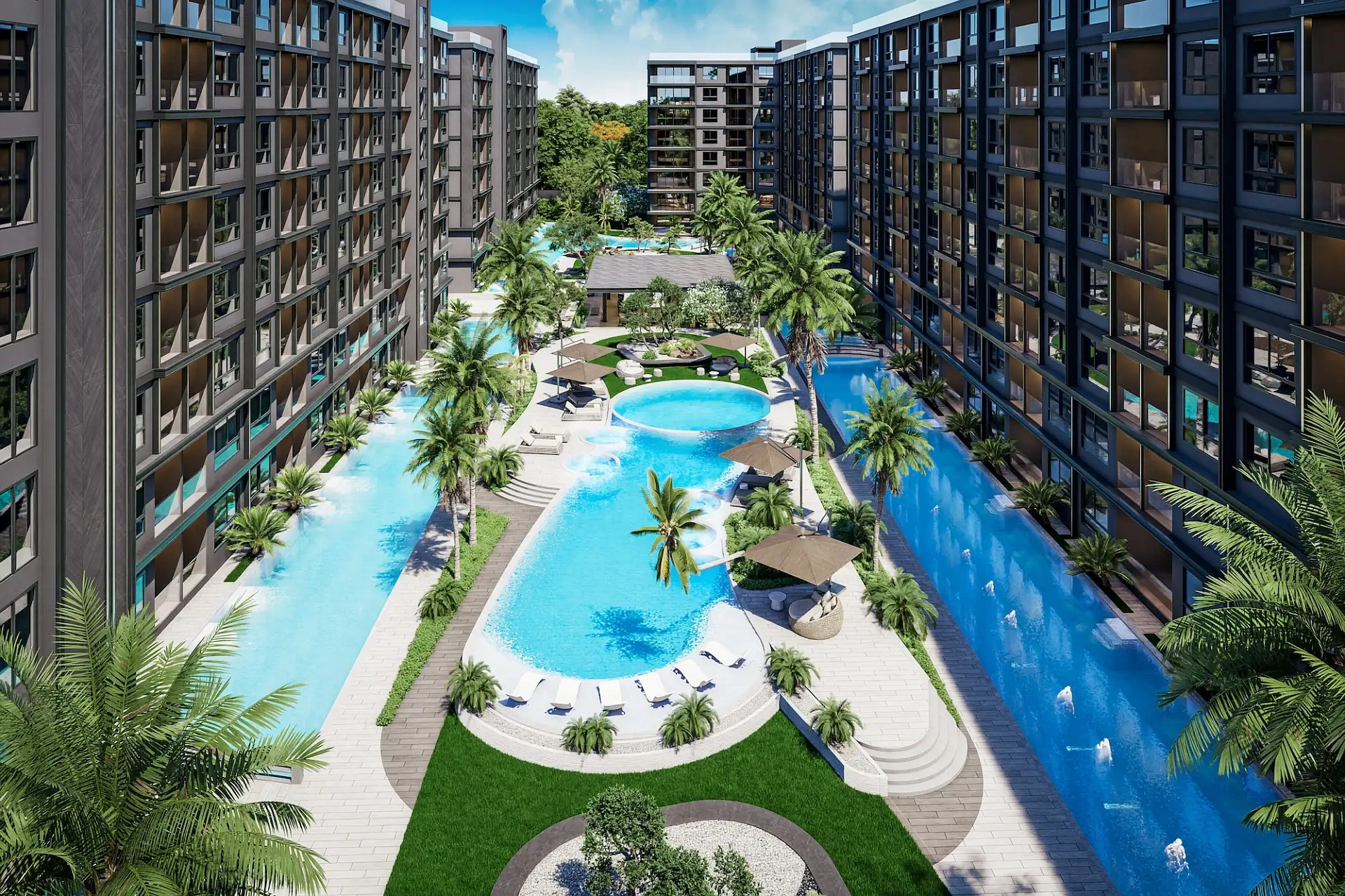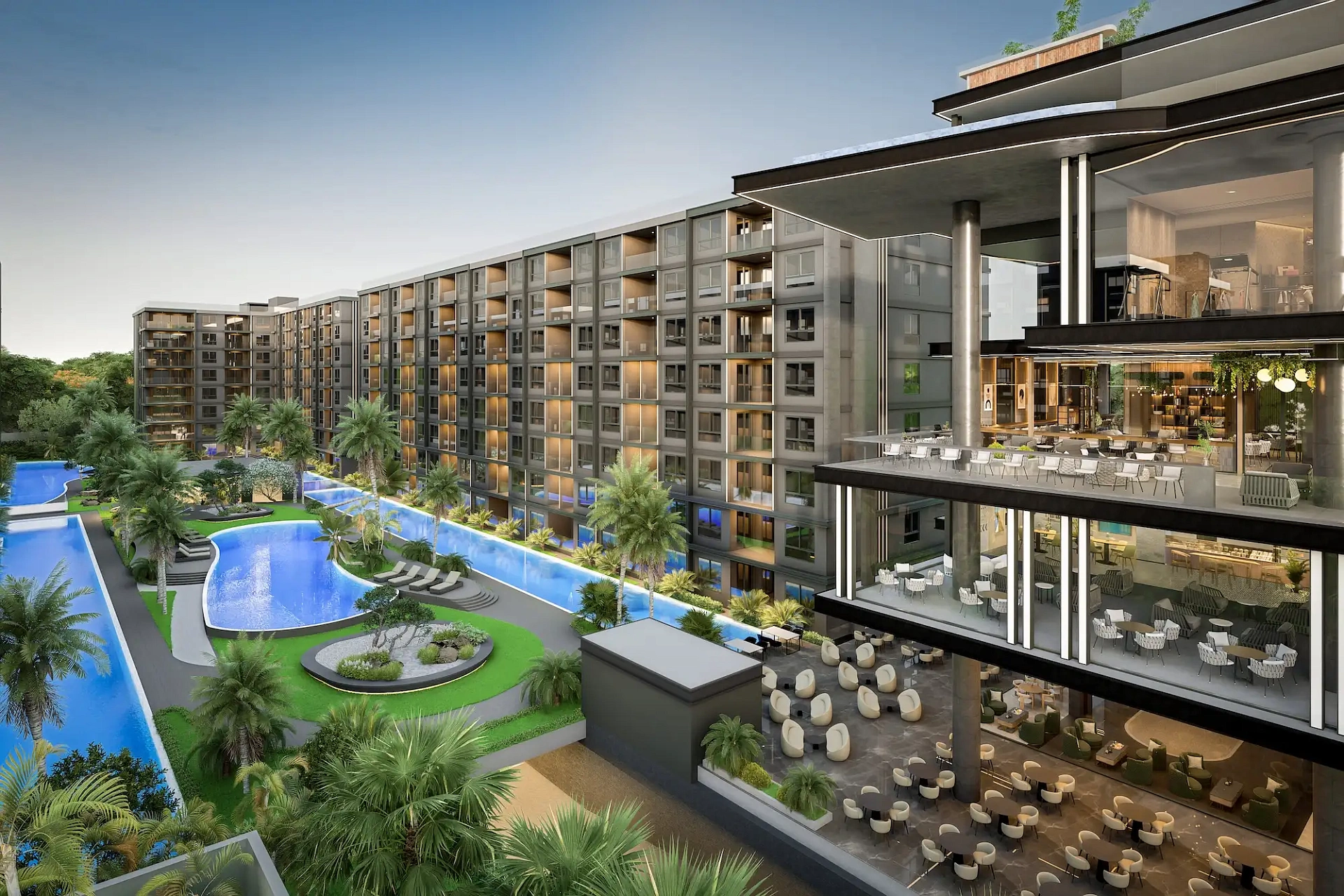 Проект создан для тех, кто ищет гармоничную среду для здоровья, восстановления и инвестиций. В центре — 6-этажный Wellness & Longevity Hub с клиникой, фитнесом TechnoGym, японским Onsen, рестораном и коворкингом. Четыре лагунных бассейна в японских садах создают атмосферу курорта. Локация обеспечивает тишину, приватность и удобный доступ к пляжам Jomtien, Pratumnak Hill и центру Паттайи.