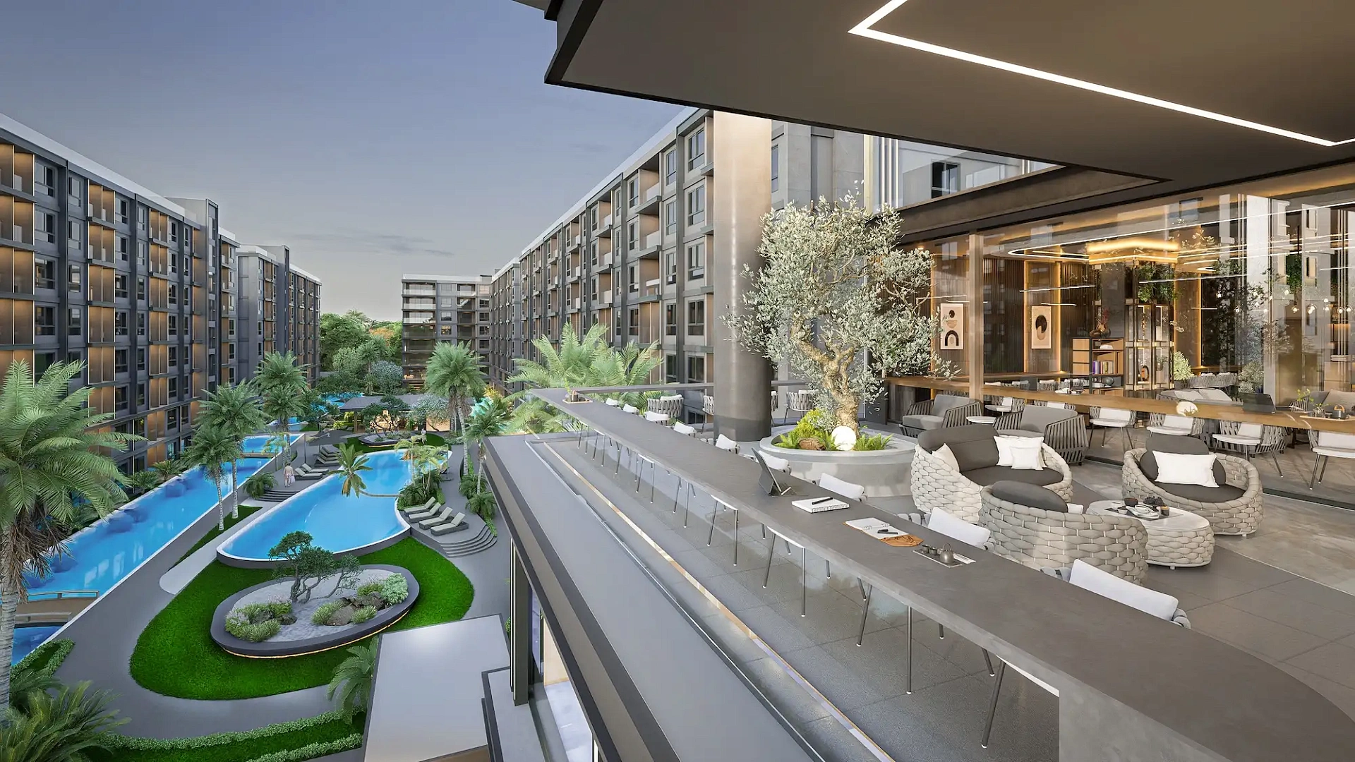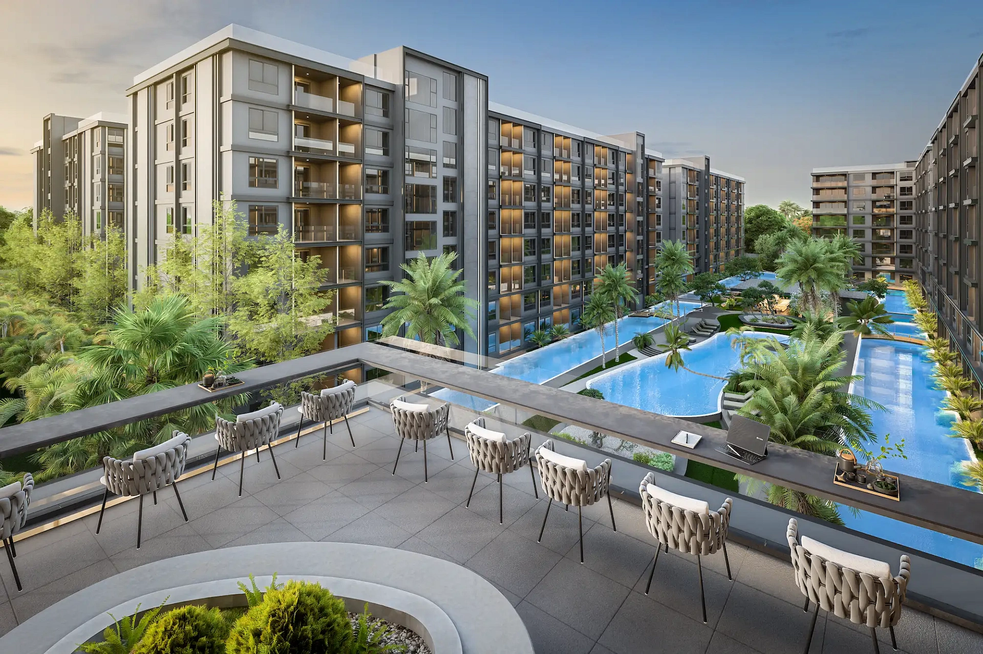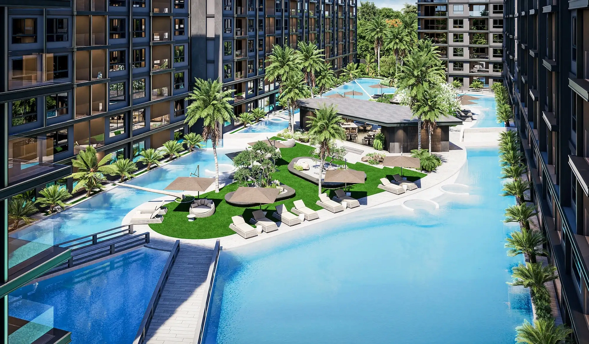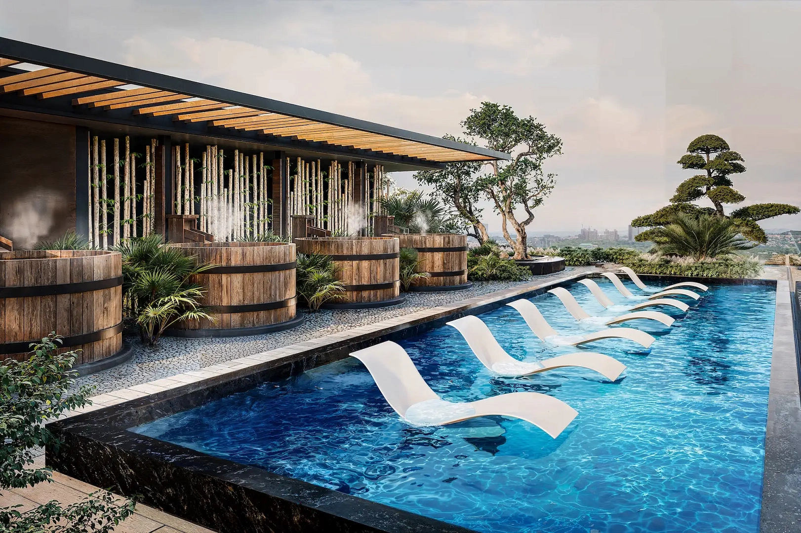 Проект создан для тех, кто ищет гармоничную среду для здоровья, восстановления и инвестиций. В центре — 6-этажный Wellness & Longevity Hub с клиникой, фитнесом TechnoGym, японским Onsen, рестораном и коворкингом. Четыре лагунных бассейна в японских садах создают атмосферу курорта. Локация обеспечивает тишину, приватность и удобный доступ к пляжам Jomtien, Pratumnak Hill и центру Паттайи.