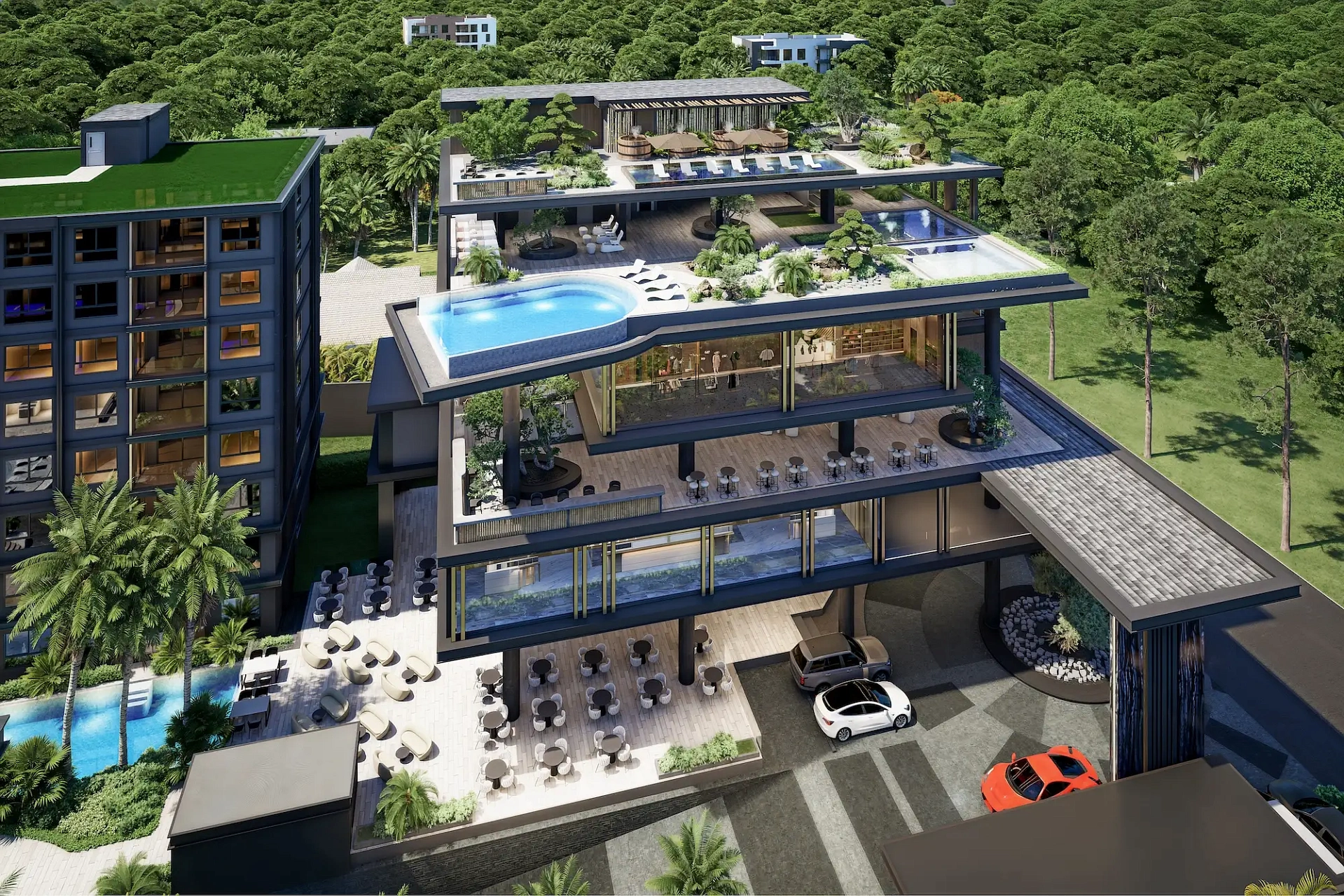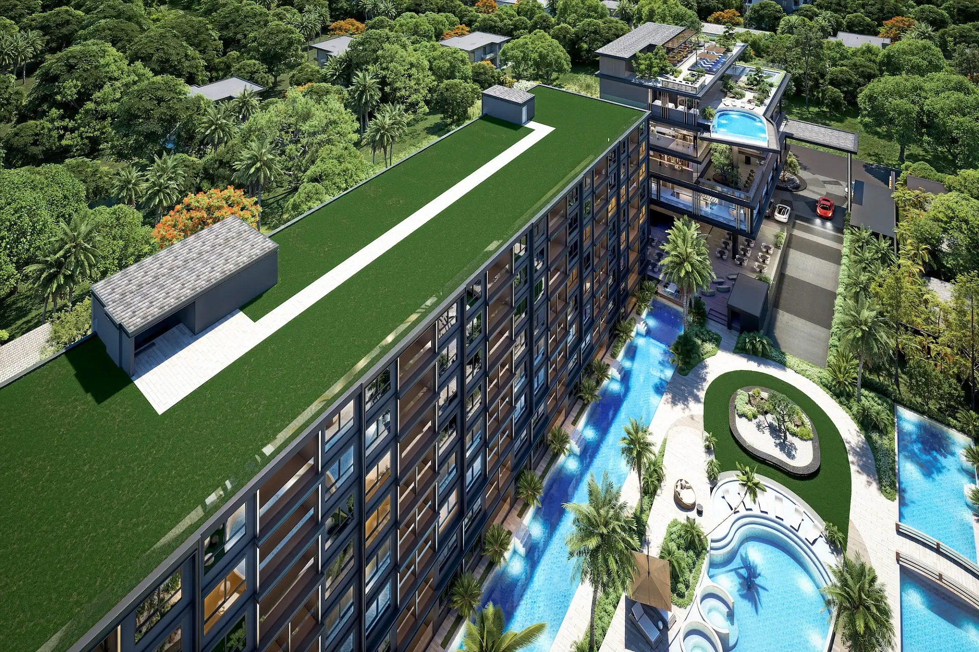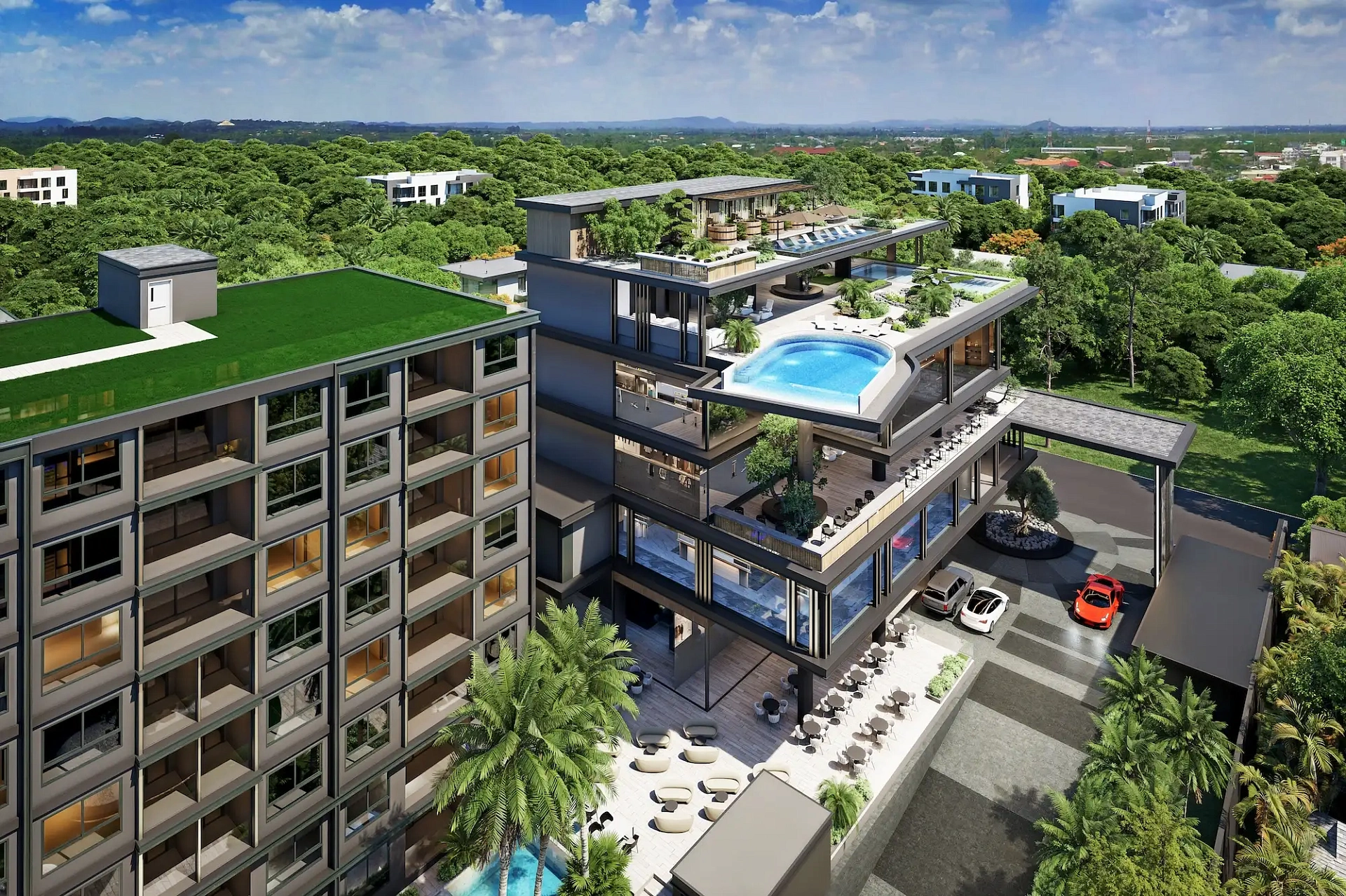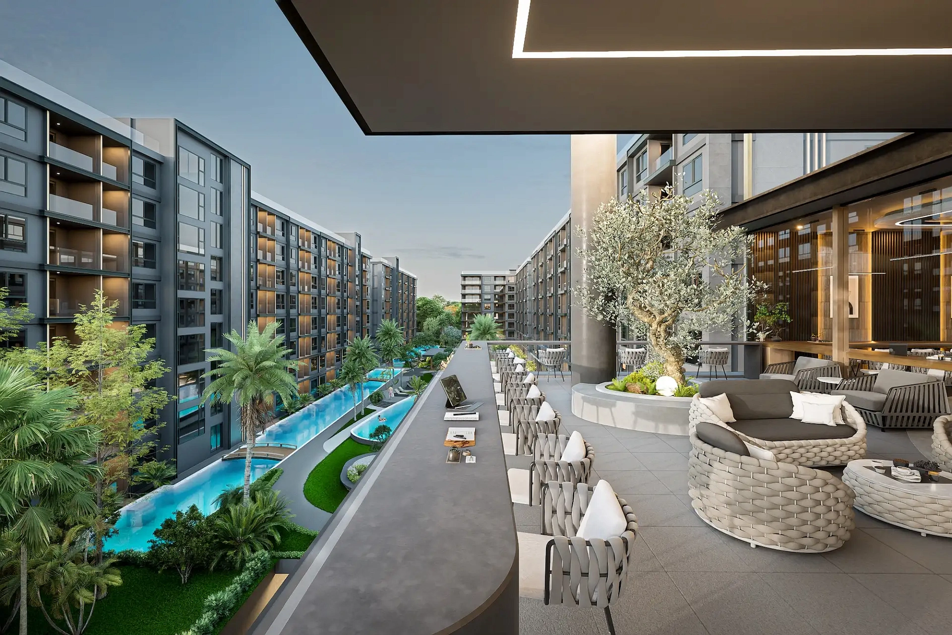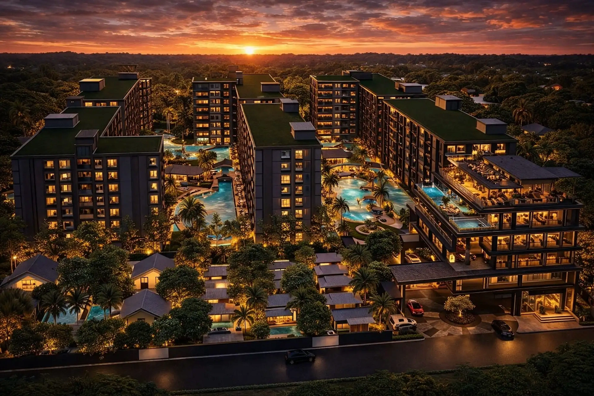 Проект создан для тех, кто ищет гармоничную среду для здоровья, восстановления и инвестиций. В центре — 6-этажный Wellness & Longevity Hub с клиникой, фитнесом TechnoGym, японским Onsen, рестораном и коворкингом. Четыре лагунных бассейна в японских садах создают атмосферу курорта. Локация обеспечивает тишину, приватность и удобный доступ к пляжам Jomtien, Pratumnak Hill и центру Паттайи.