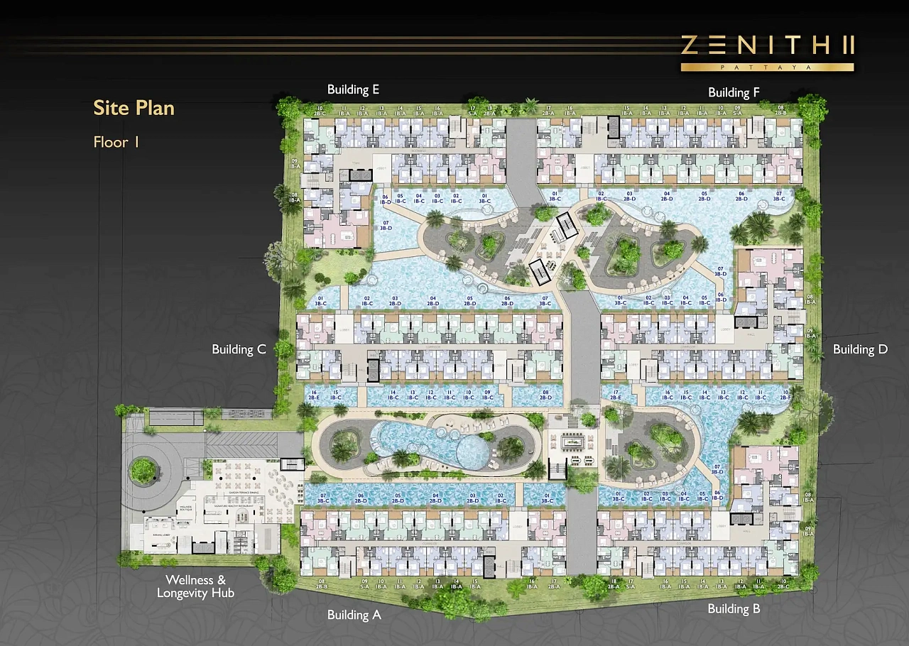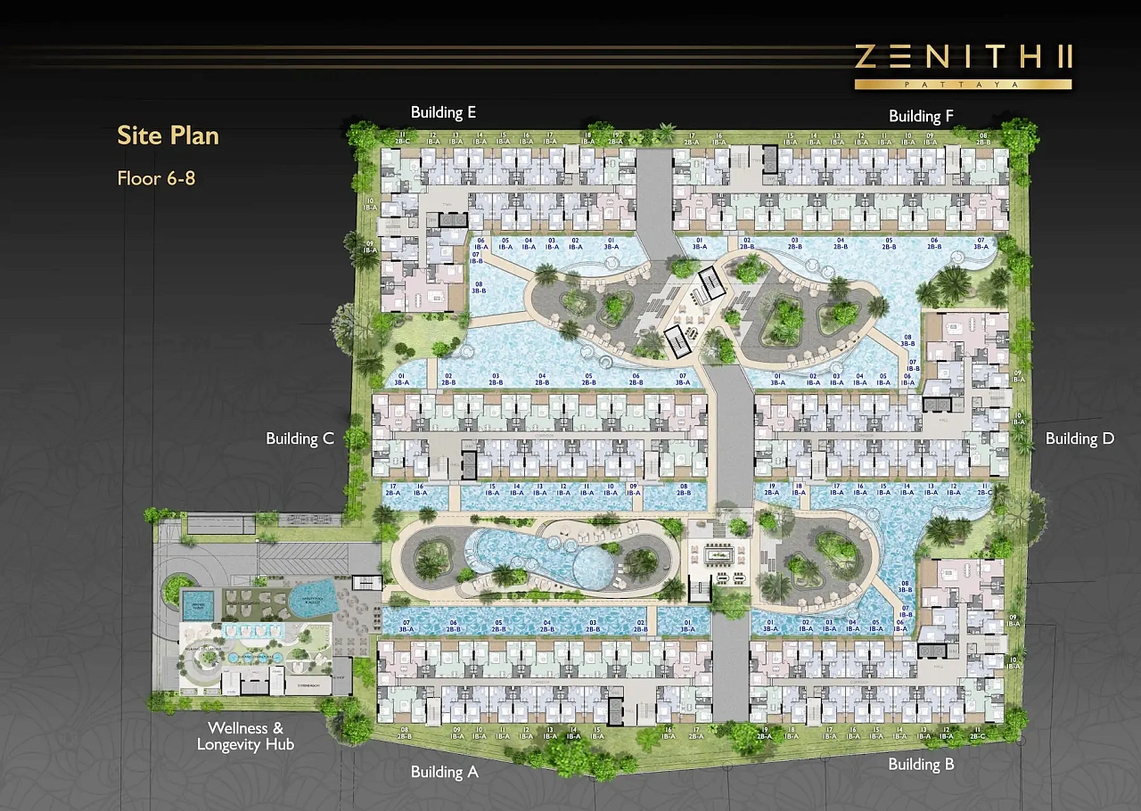 Zenith Pattaya II — это по-настоящему революционный Wellness & Longevity комьюнити. Это 8-этажный грандиозный комплекс (более 900 резиденций) на 12 раях закрытой зеленой территории в престижном районе Thappraya. Его уникальность — это фокус на здоровье, долголетии, медицинском туризме и огромном количестве шикарных зеленых японских садов и лагунных водных пространств. - Чем особенна инфраструктура этого комплекса для здоровья?