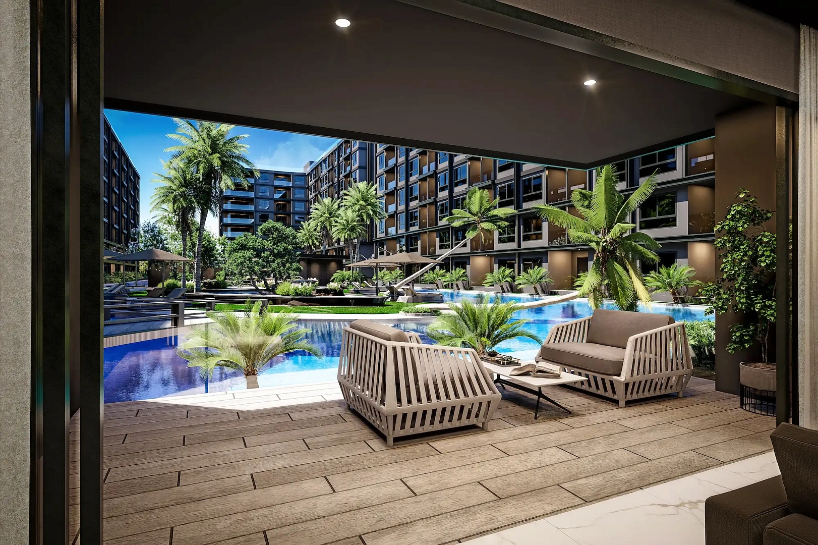 Проект создан для тех, кто ищет гармоничную среду для здоровья, восстановления и инвестиций. В центре — 6-этажный Wellness & Longevity Hub с клиникой, фитнесом TechnoGym, японским Onsen, рестораном и коворкингом. Четыре лагунных бассейна в японских садах создают атмосферу курорта. Локация обеспечивает тишину, приватность и удобный доступ к пляжам Jomtien, Pratumnak Hill и центру Паттайи.
