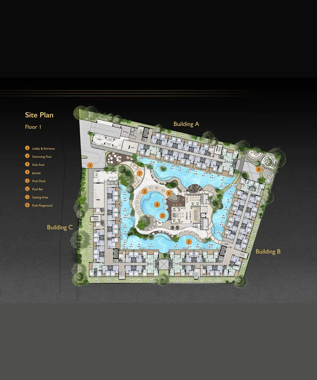- Удобное расположение: Всего 1 км от Walking Street и пляжа, с быстрым доступом к ключевым транспортным артериям, ресторанам, магазинам и аэропортам, что делает комплекс идеальным для жизни и инвестиций.