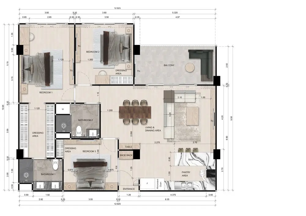 - Удобное расположение: 2,5 км от пляжа Джомтьен, в 900 м от кафе и супермаркетов, с быстрым доступом к центру Паттайи и рынку Rompho.