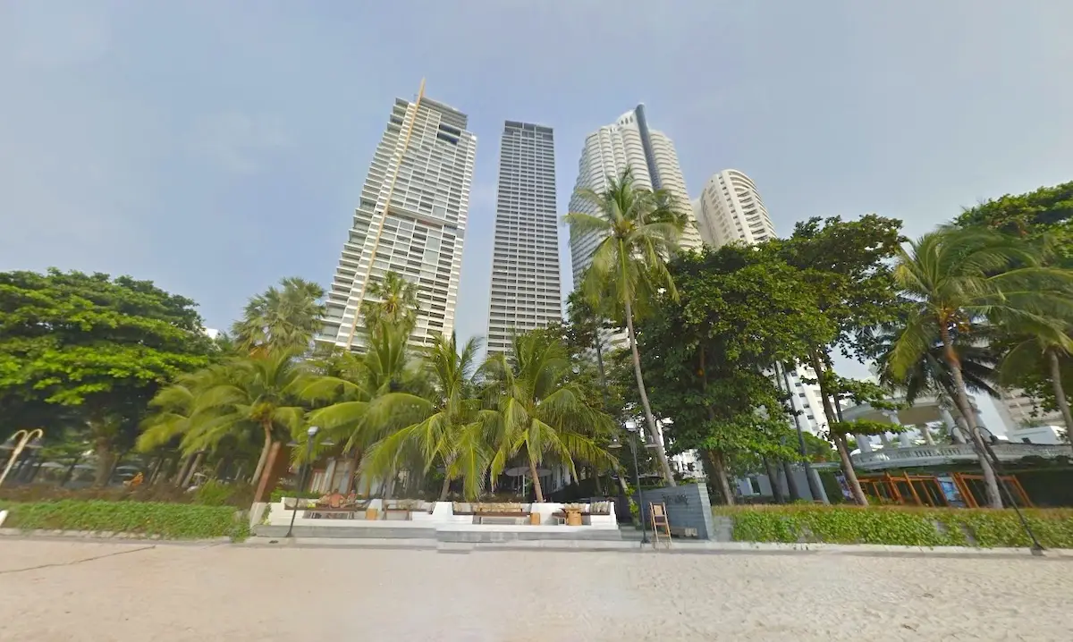Далеко ли от башен-гигантов Zire Wongamat до пляжа?
