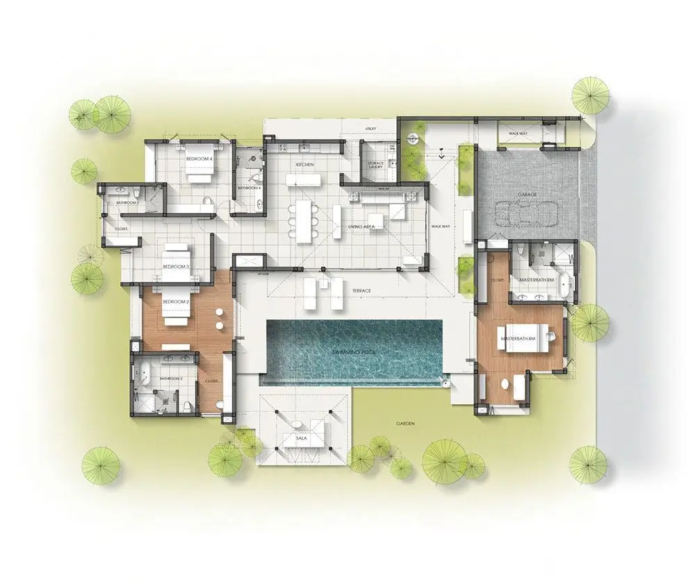 - Комфорт: просторные интерьеры, премиальная отделка, тропический дизайн