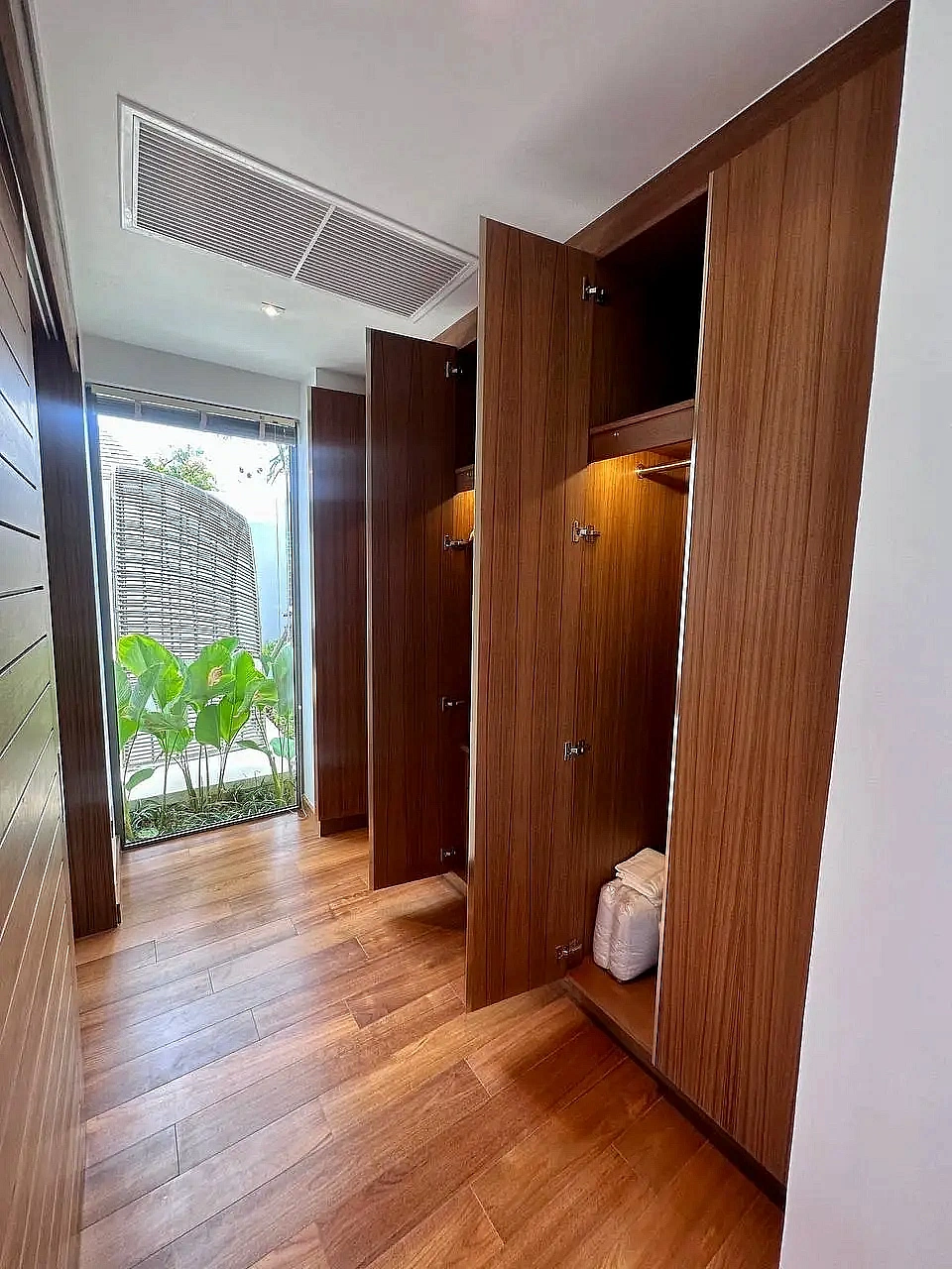 - Просторные гардеробные с подсветкой