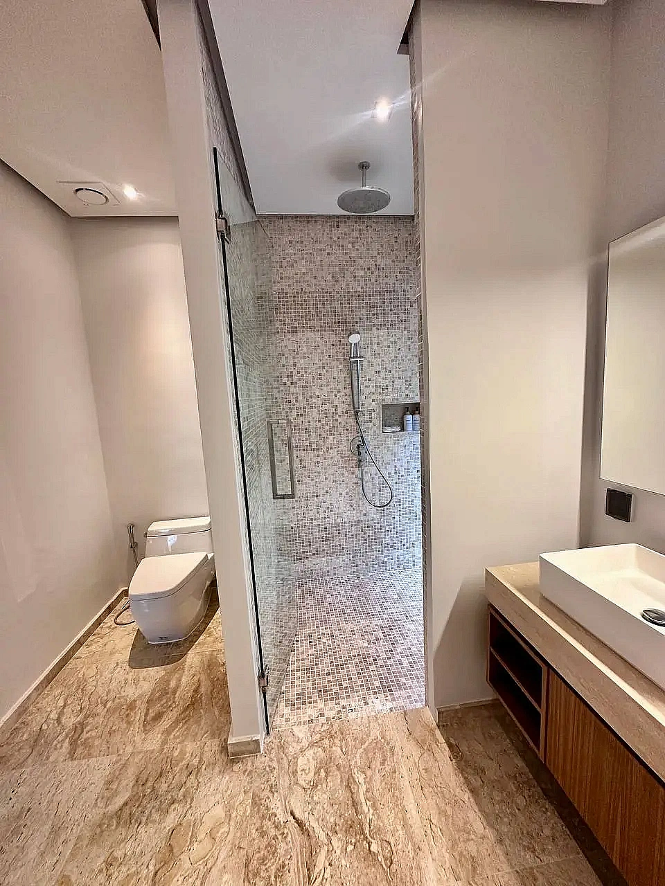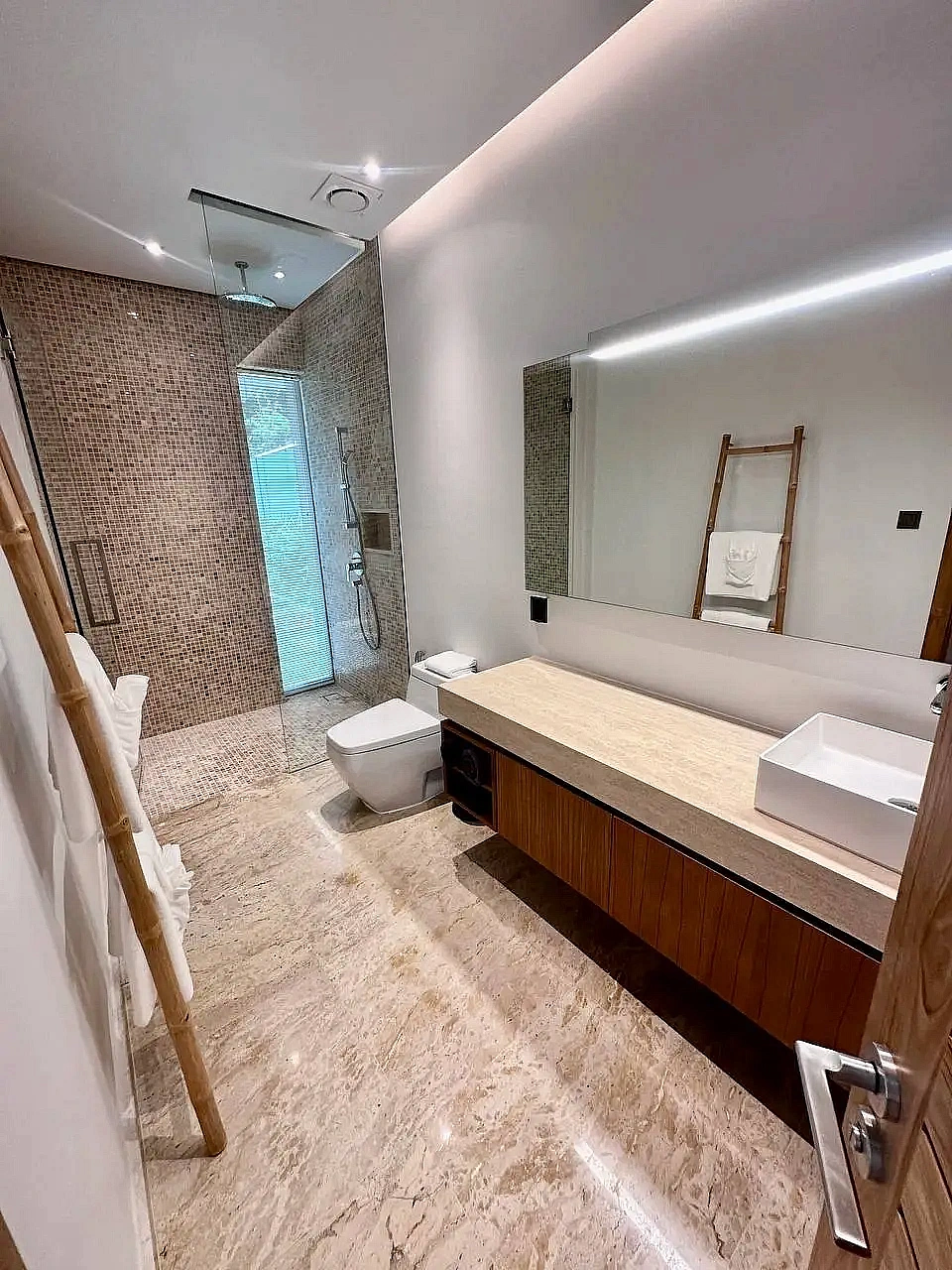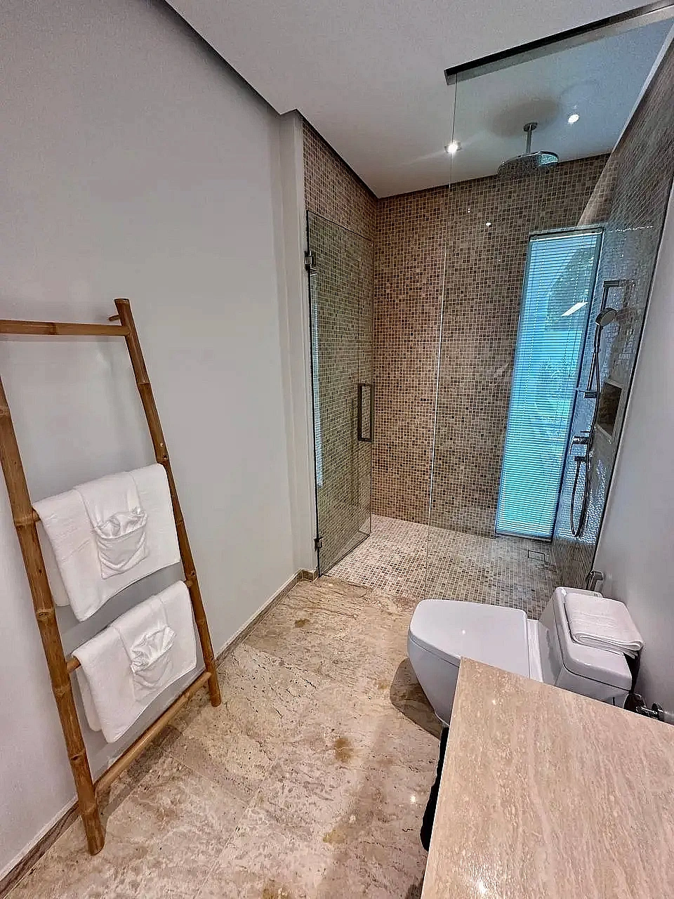 - Ванные комнаты при каждой спальне: одна с душем и ванной с тропическим душем
