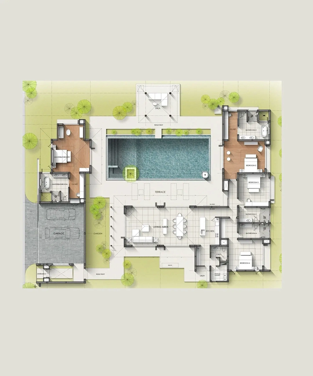 - Типы вилл: 15 эксклюзивных вилл с 3–4 спальнями и современным дизайном