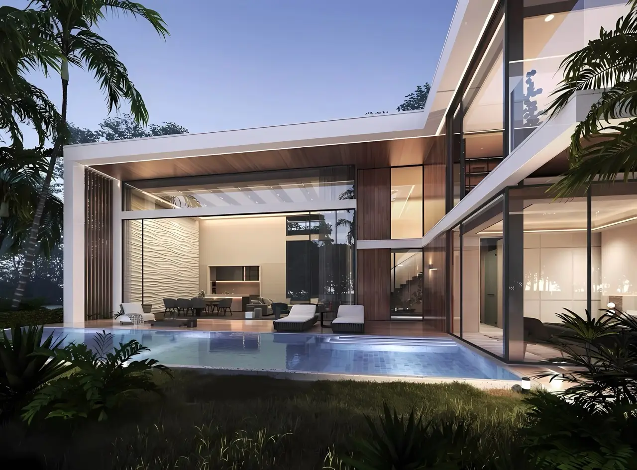 - Комфорт: просторные виллы с панорамными окнами высотой до 10 м, террасами и современным дизайном
