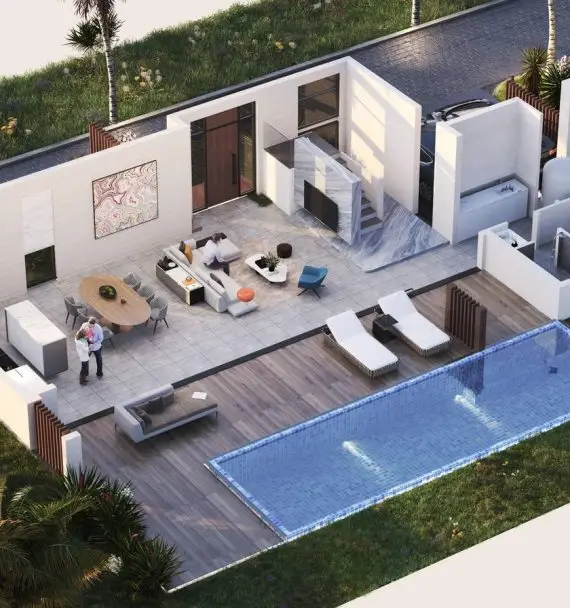 В проекте представлены 75 огромных эксклюзивных вилл (от 3 до 5 спален) невероятной площадью от 351 до 691 м²! В каждой вилле: огромный частный бассейн, зеленый сад, панорамные окна поразительной высотой до 10 метров и гараж на 2-3 авто! Территория полностью охраняемая 24/7 с ландшафтными садами и зонами отдыха. -