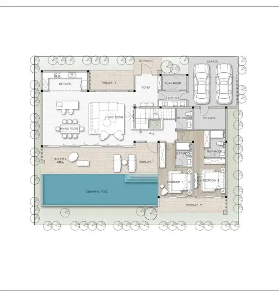 Ежегодное обслуживание премиум-класса зависит от типа виллы: от 15,000 до 25,000 бат в месяц (оплачивается на год вперед). Также предусмотрен единоразовый амортизационный взнос (фонд на будущие глобальные ремонты) от 200 до 400 тысяч бат. Налог на Freehold (6,3%) и Leasehold (1,1%) считается по стандарту.