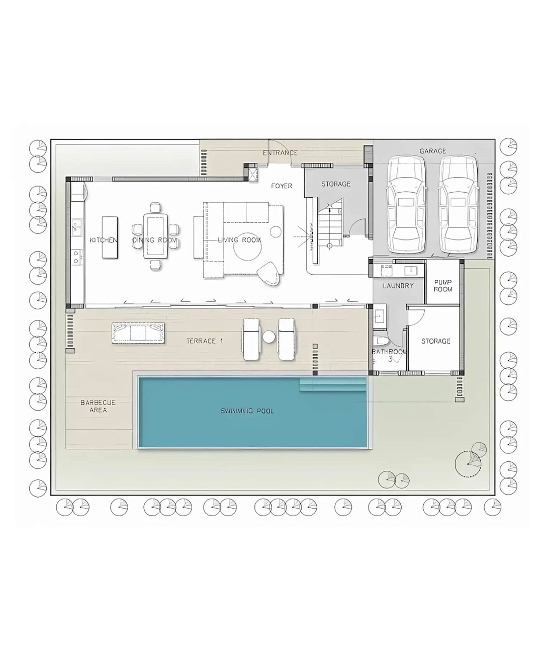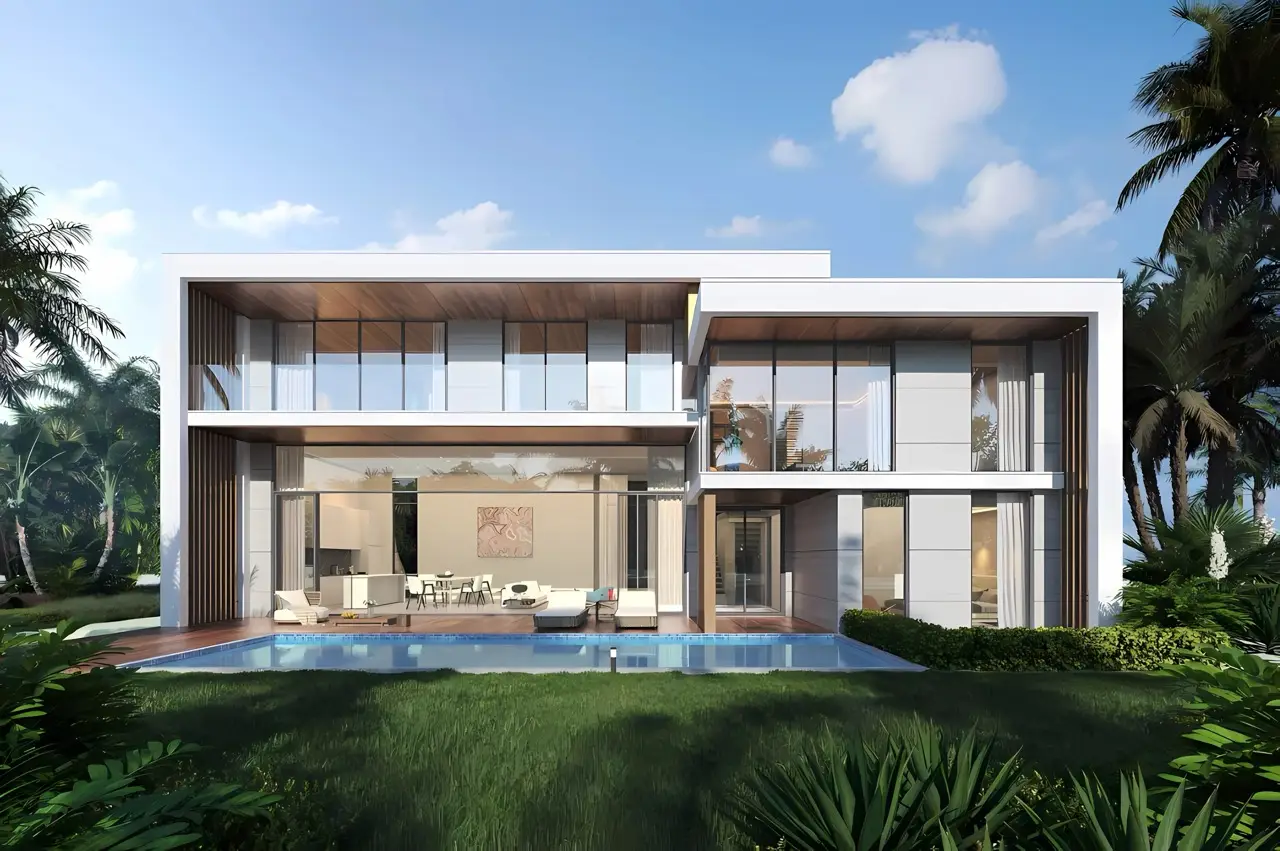 - Типы вилл: 3–5 спальни (от 351 до 691 м²) с частными бассейнами, садами и гаражами на 2–3 автомобиля