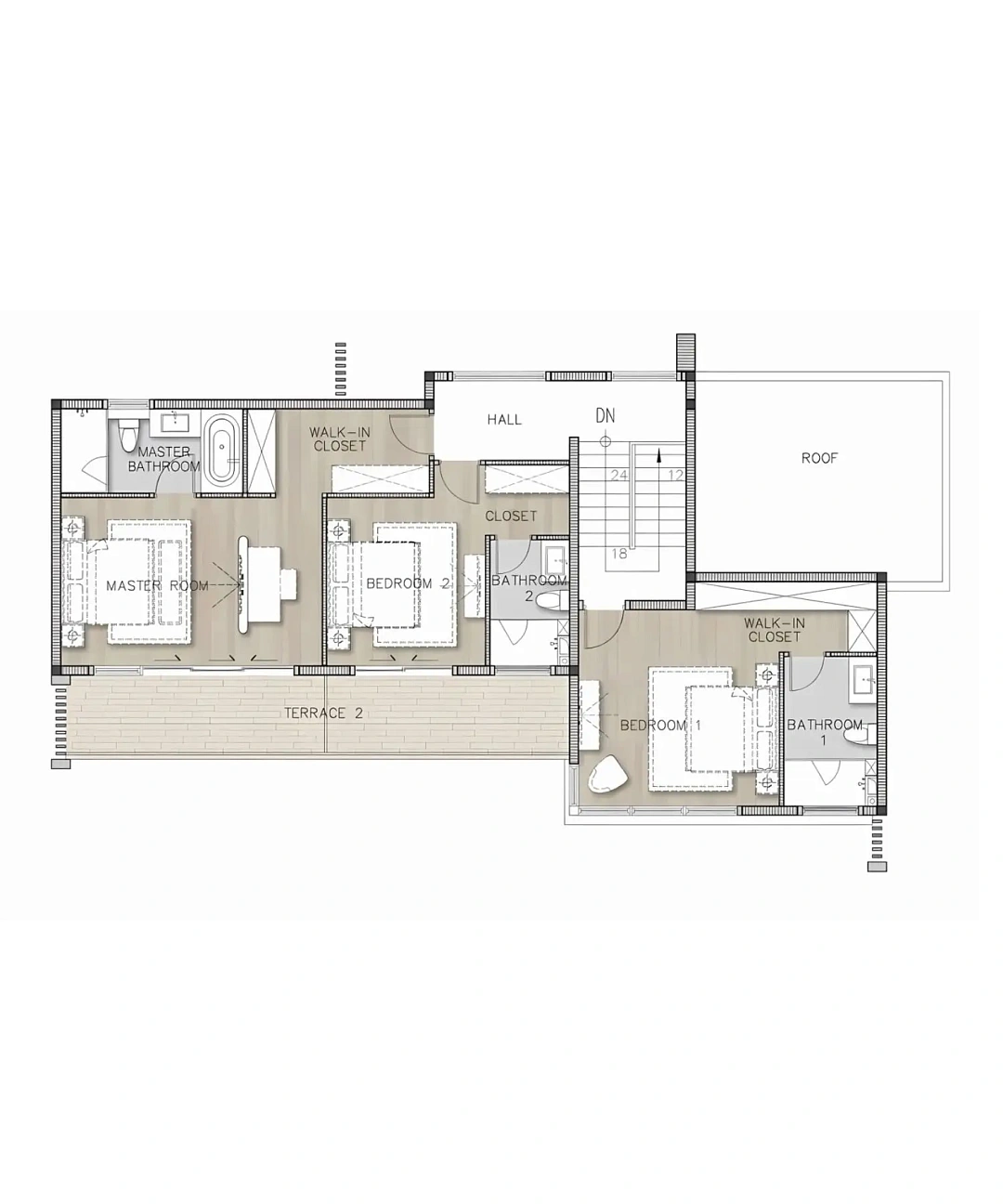 - Главная спальня: с гардеробной и ванной комнатой