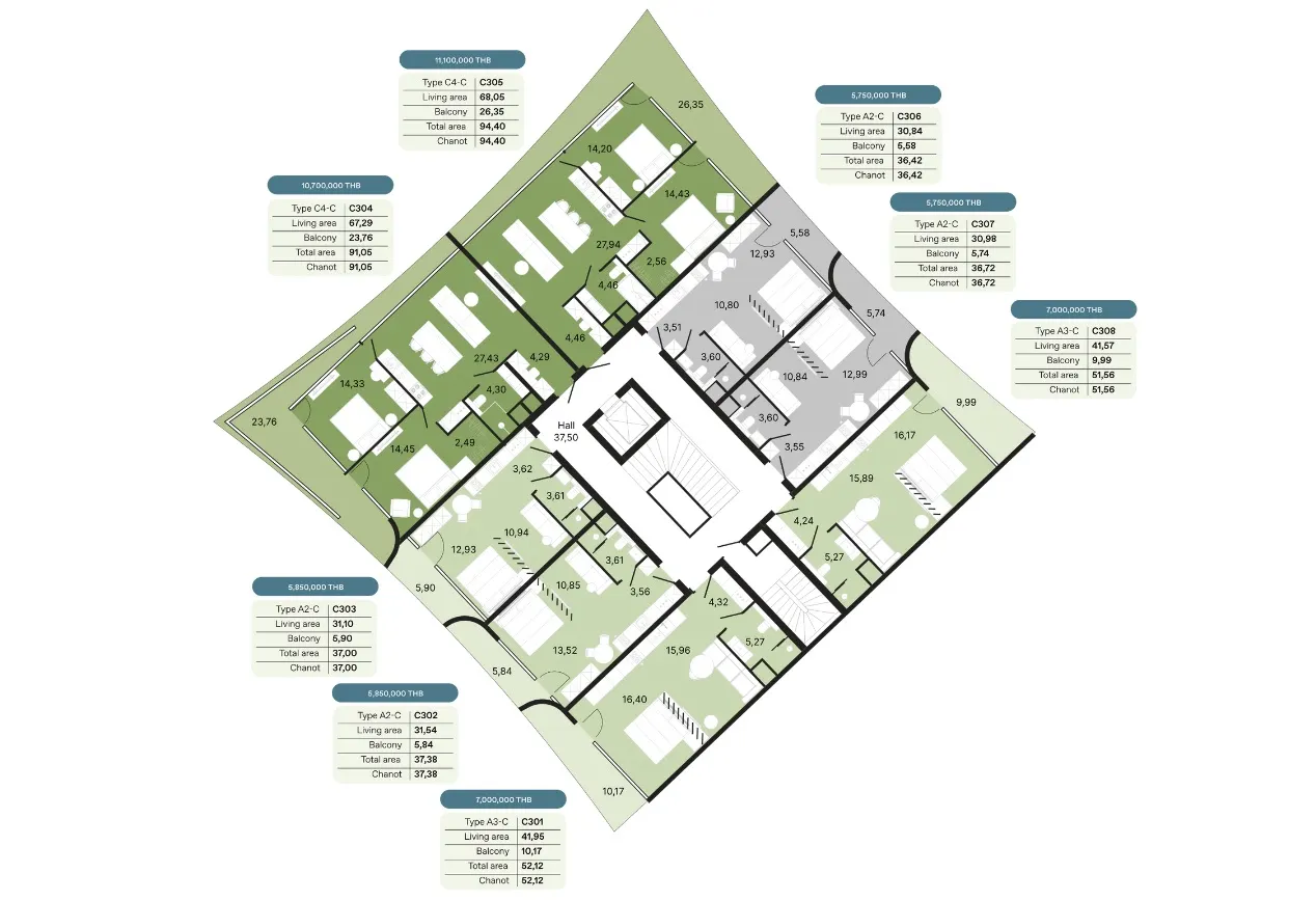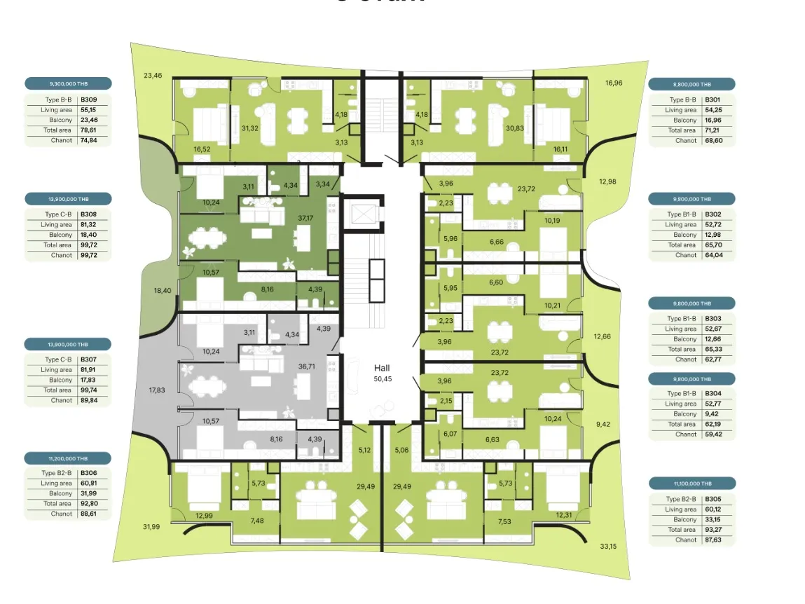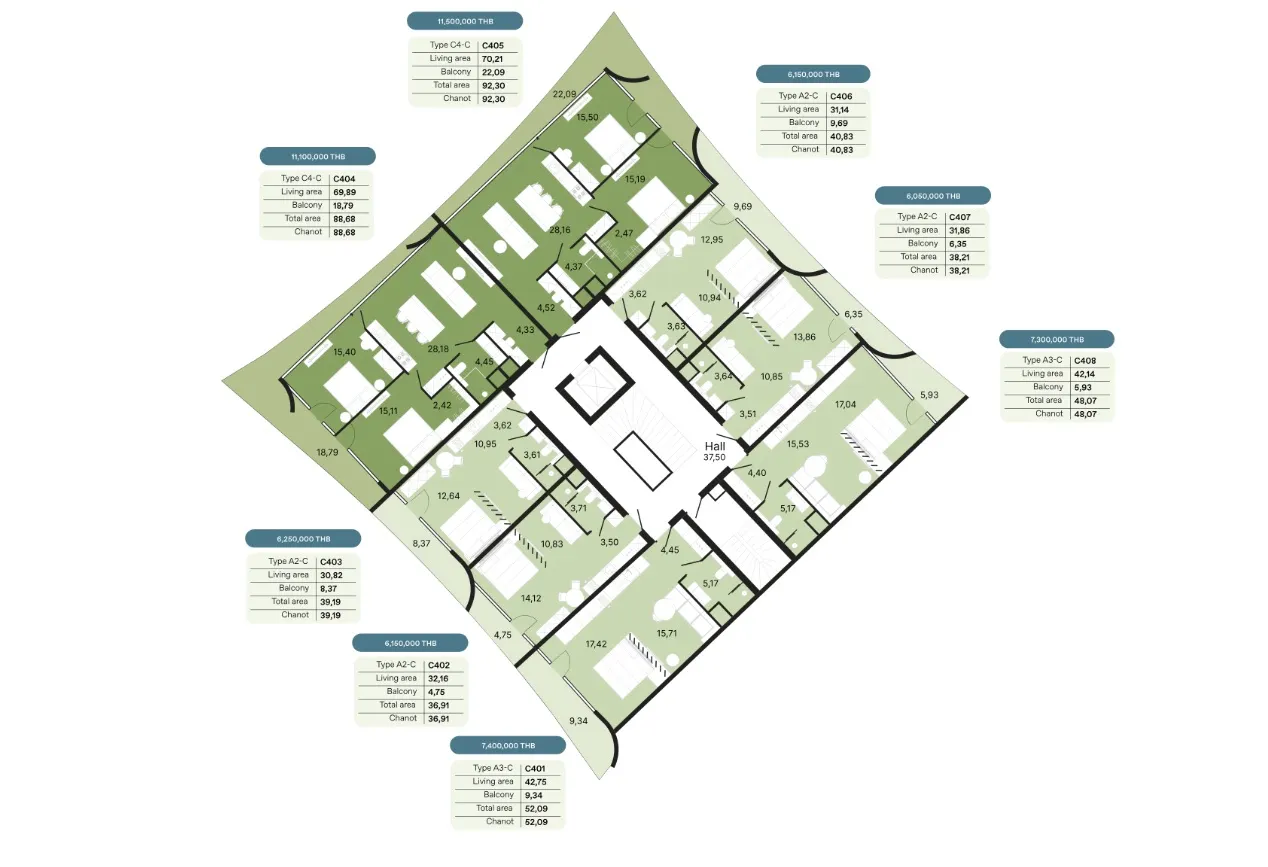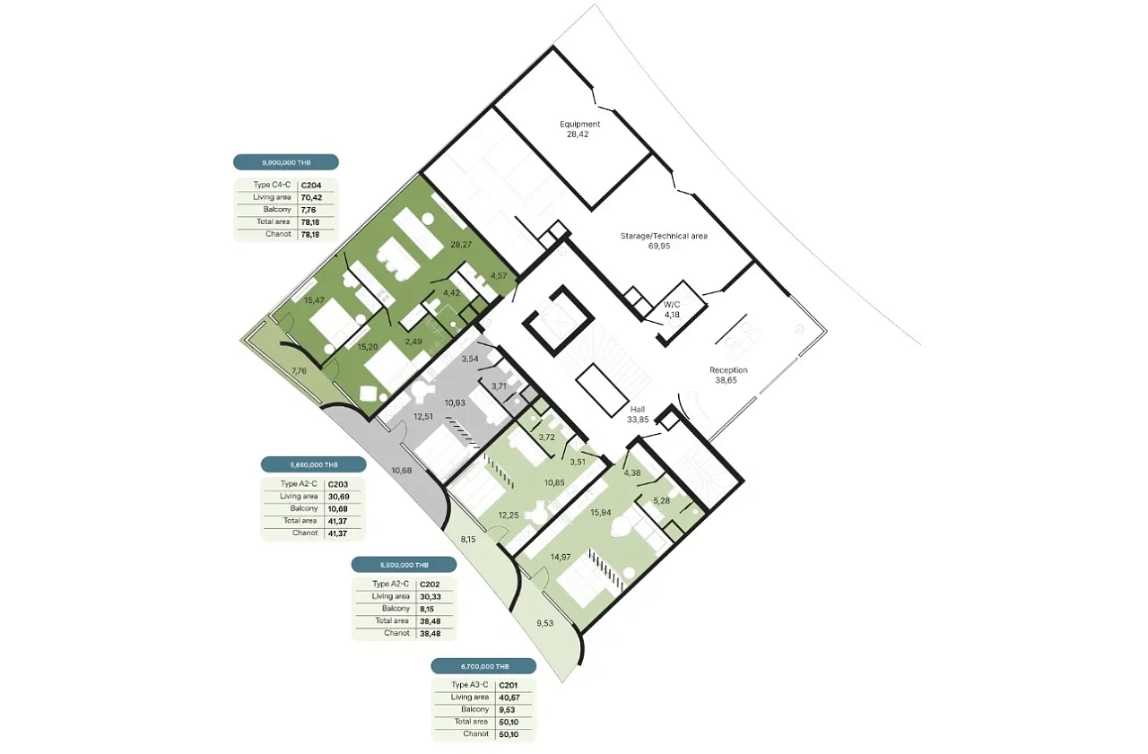 - Амортизационный фонд - 700 бат за кв.м