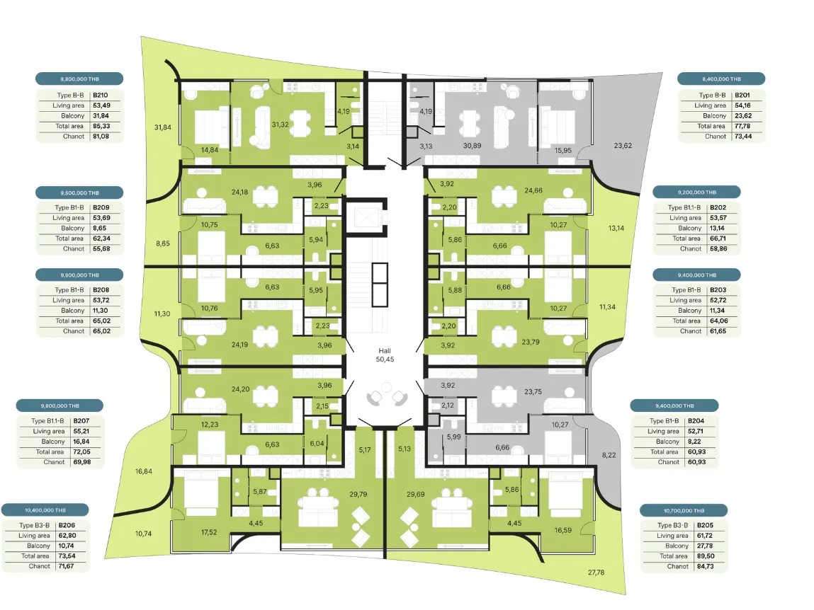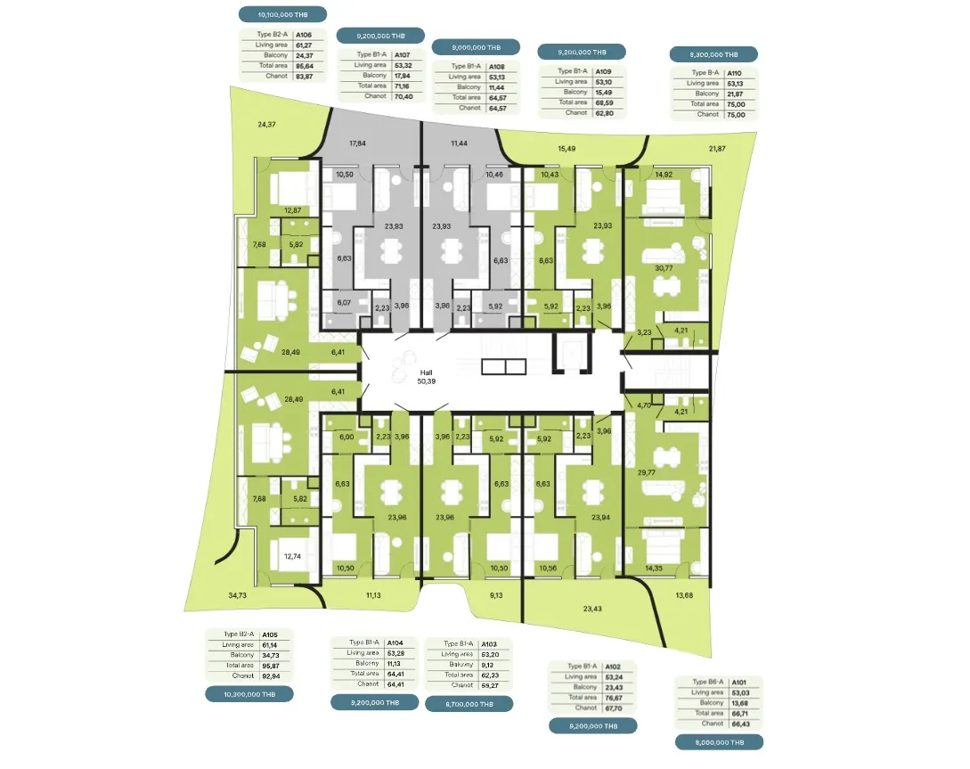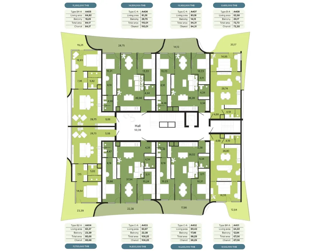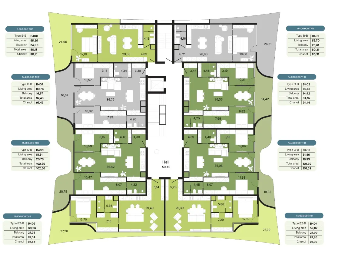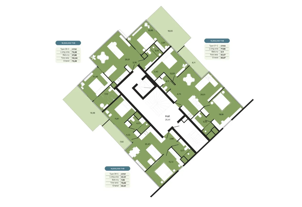 - Амортизационный фонд - 700 бат за кв.м