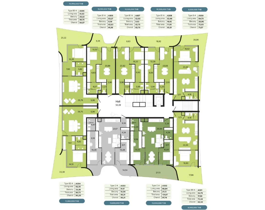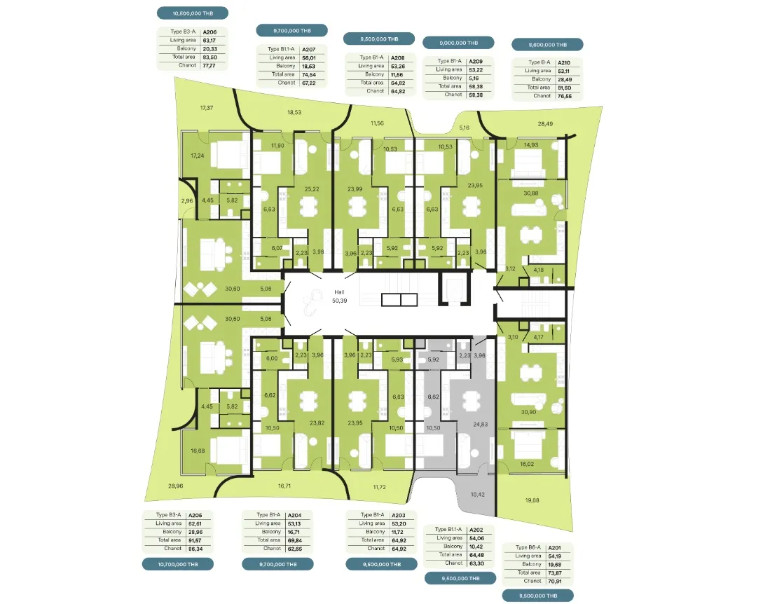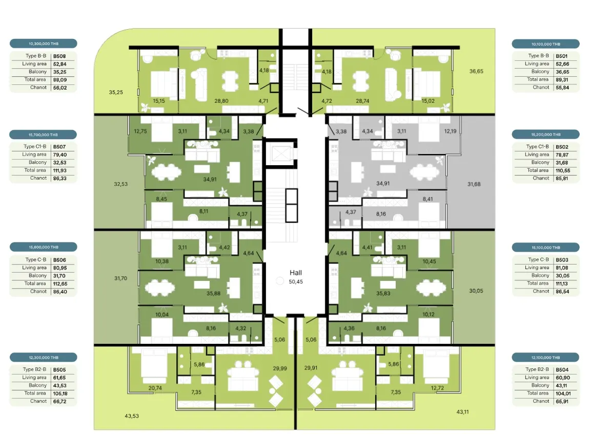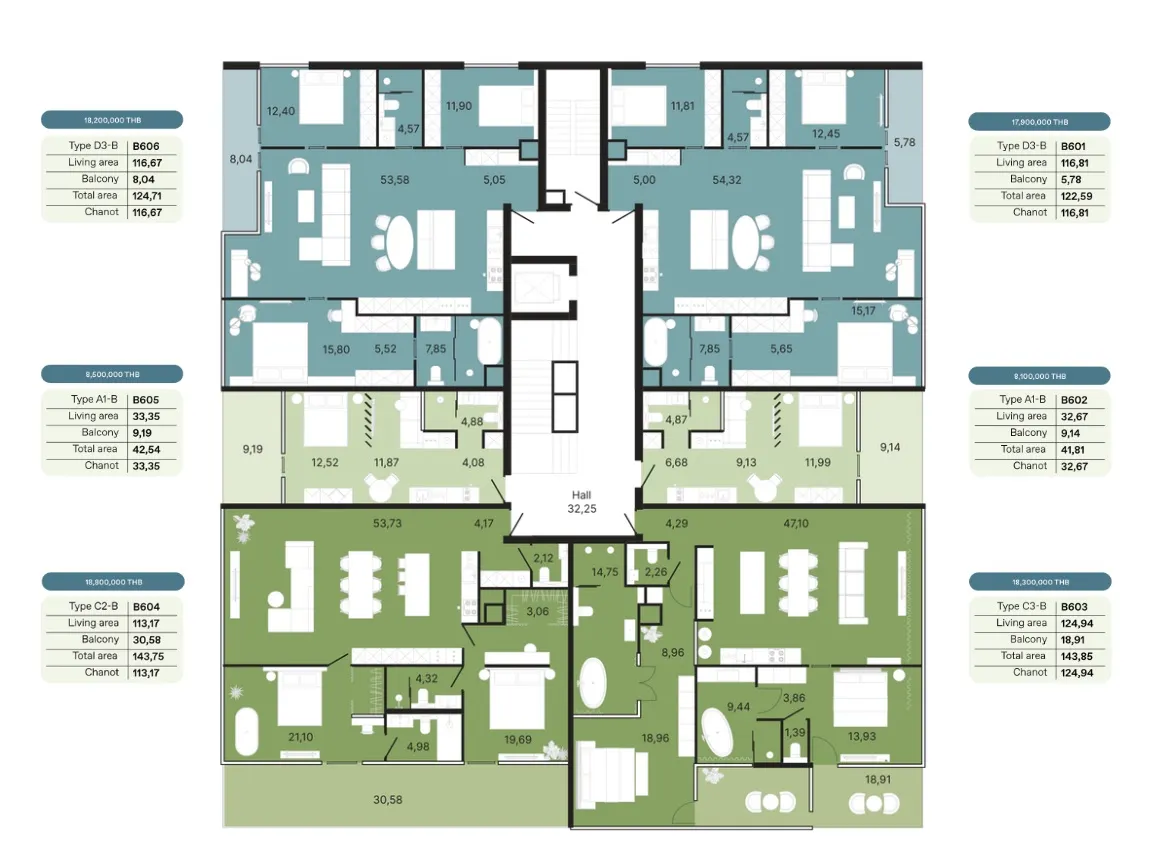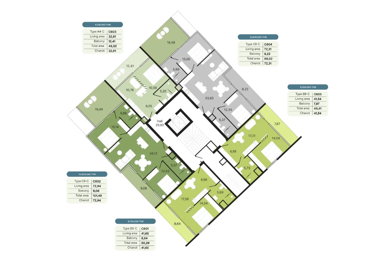 - Амортизационный фонд - 700 бат за кв.м