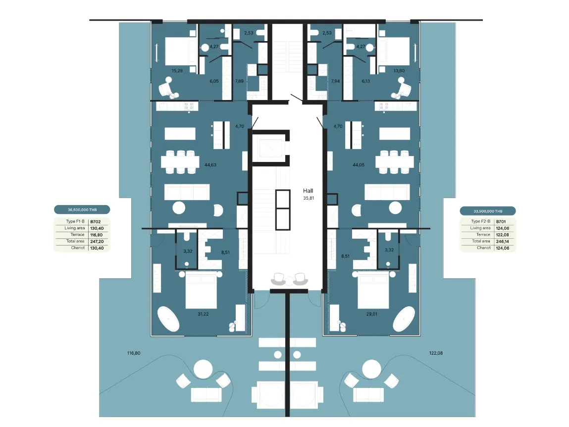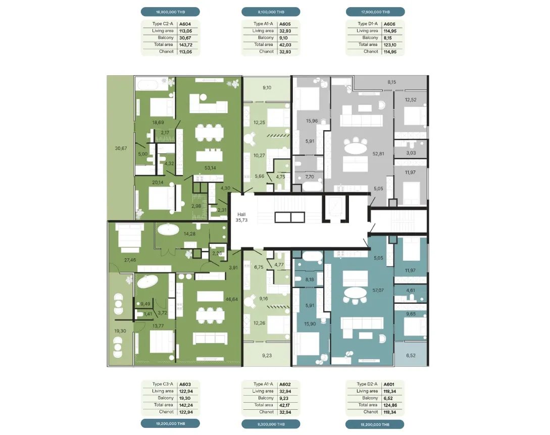 Регистрация иностранной квоты Freehold обойдется в 10,000 бат за м². Дополнительно оплачиваются амортизационный фонд (700 бат/м²), годовое обслуживание (100 бат/м² в месяц) и установка счетчиков (20,000 бат). Регистрационный налог составляет 2,2%.