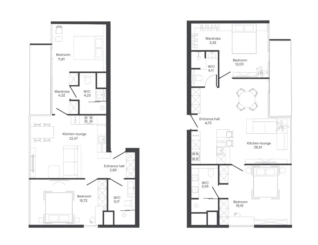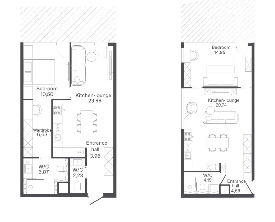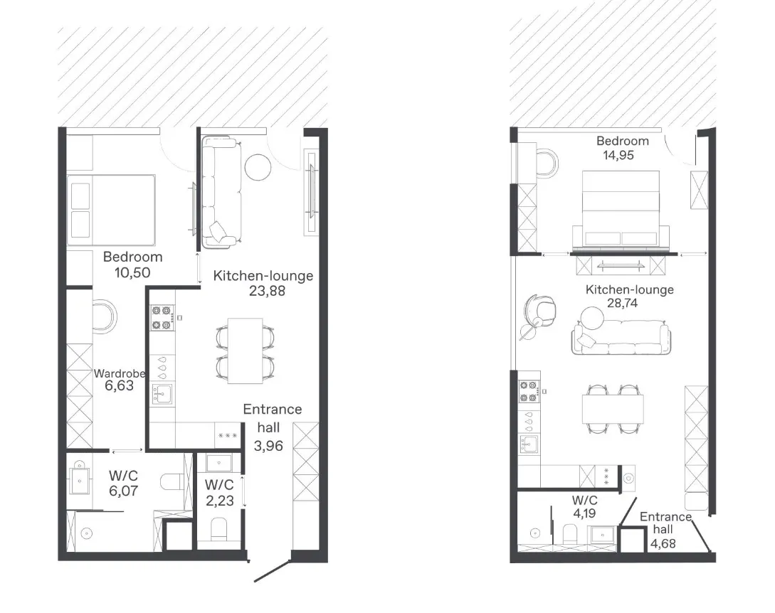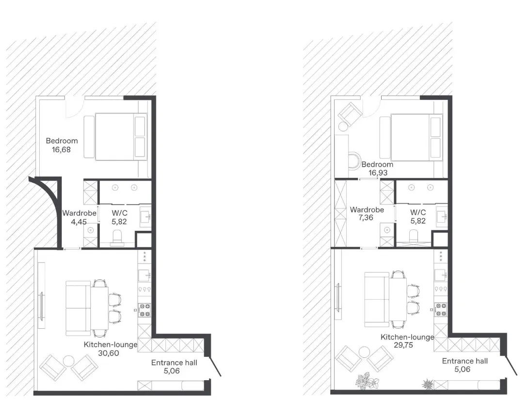 - Функциональная диверсификация: 135 апартаментов с 26 планировками, оформленных Zrobim Architects в стилях "Волна", "Ритм" и "Этника", с учетом разных предпочтений жильцов.