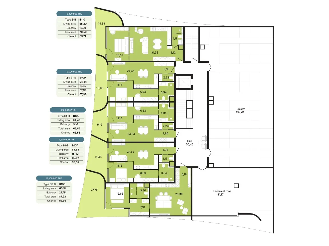 - Плата за обслуживание - 100 бат за кв.м/мес (оплата за год вперед)