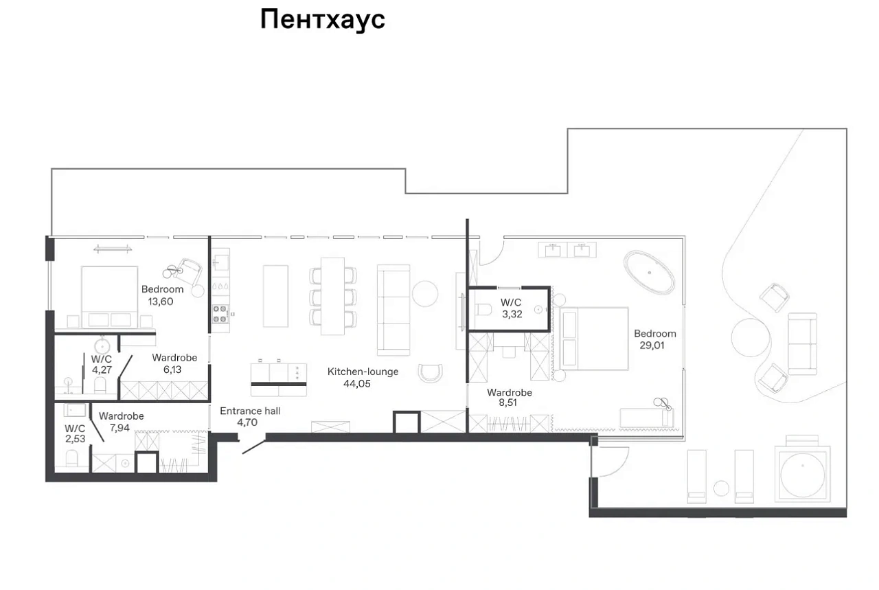 Стоимость мебельного пакета: уточняйте у Агента.