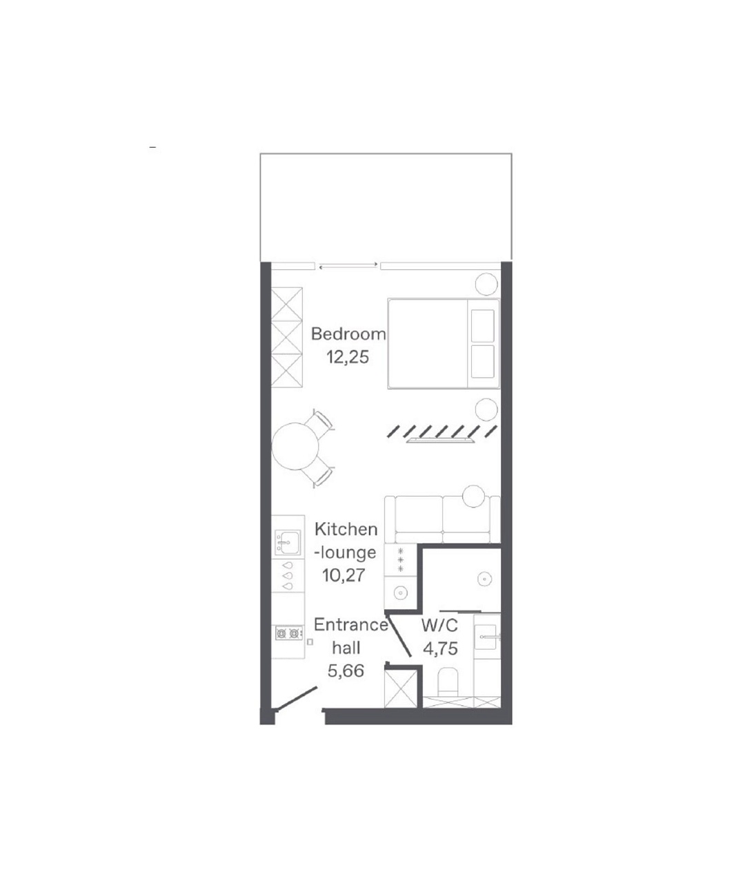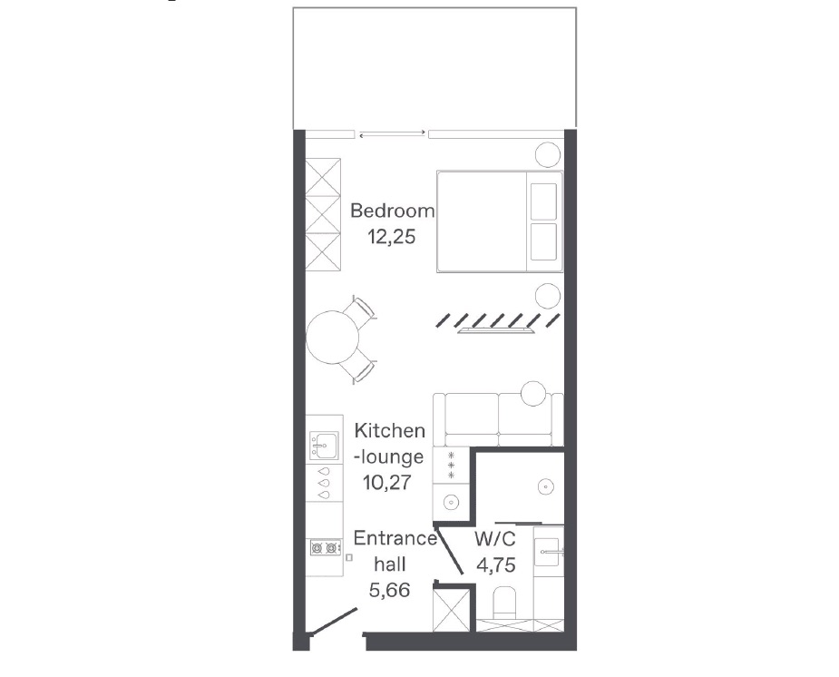 - Кровать с матрасом (размер зависит от типа апартаментов)