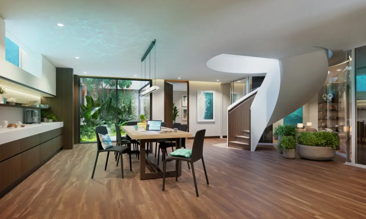 - Типы резиденций: 56 таунхаусов площадью 417 м² на 3 этажа