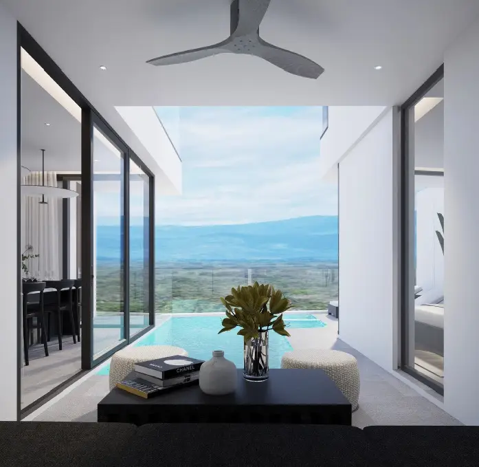 - Апартаменты премиум-класса: просторные планировки, панорамные окна с видом на море и горы, современный дизайн и качественная отделка.