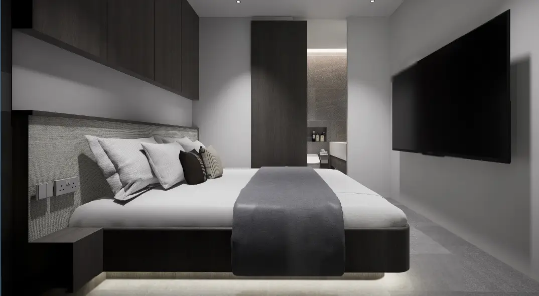 - Кровать с матрасом (размер зависит от типа апартаментов)