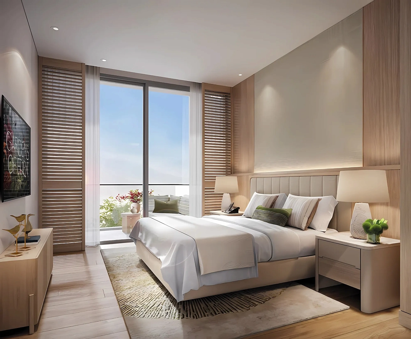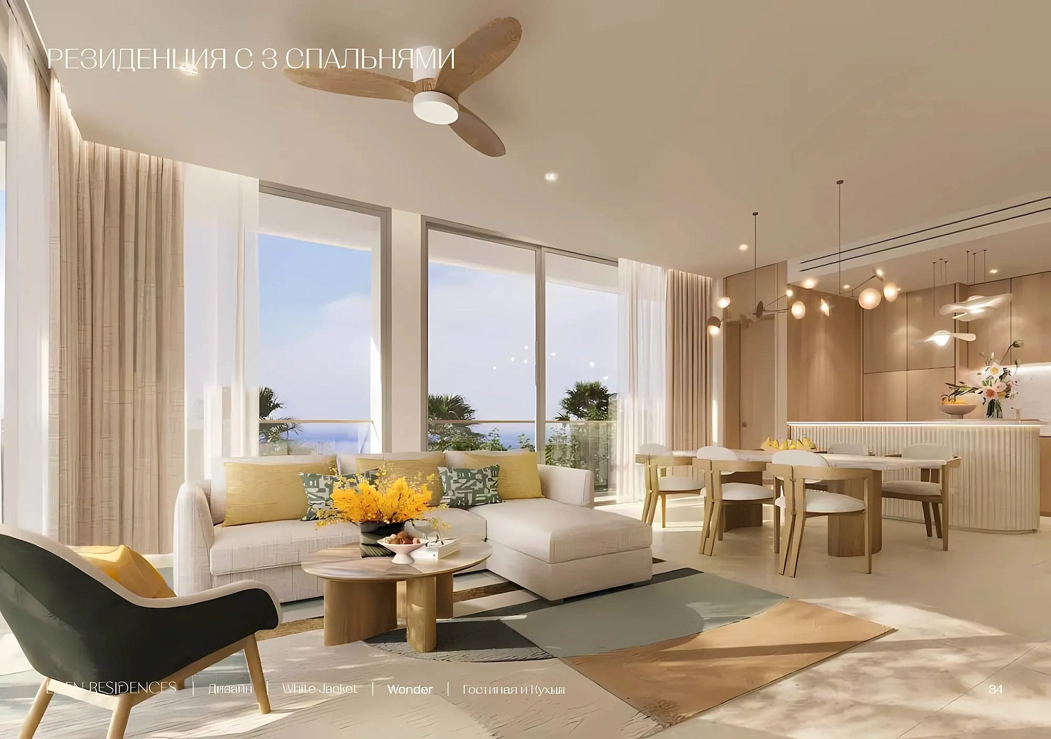 Особенности: Апартаменты с 1, 2, 3 спальнями, пентхаусы (72–433 м²), детский клуб, аквапарк, кафе, лаундж-зоны, 5 ресторанов, Sky Bar, охраняемая территория без автомобилей