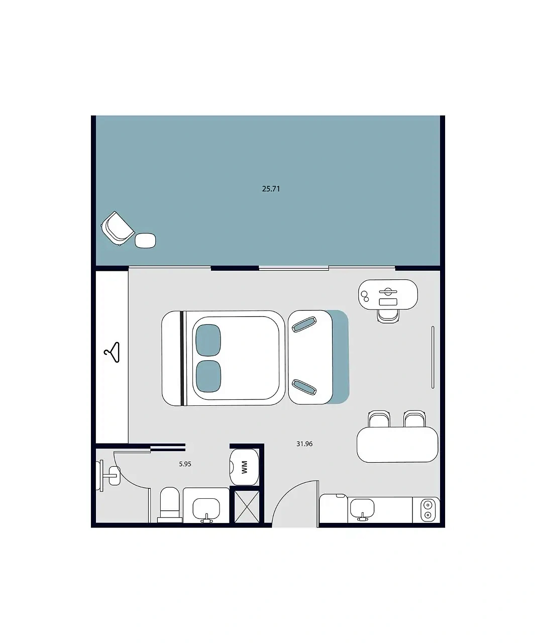 - Кровать с матрасом (размер зависит от типа апартаментов)