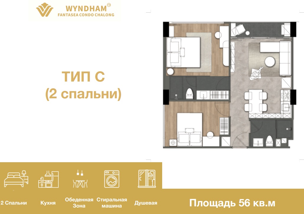 О квартире Fantasea Condo Chalong — апартаменты с 2 спальнями, 56 м²