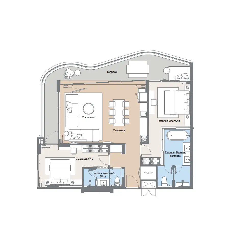 Garrya Residences — апартаменты с 2 спальнями, 115 м²