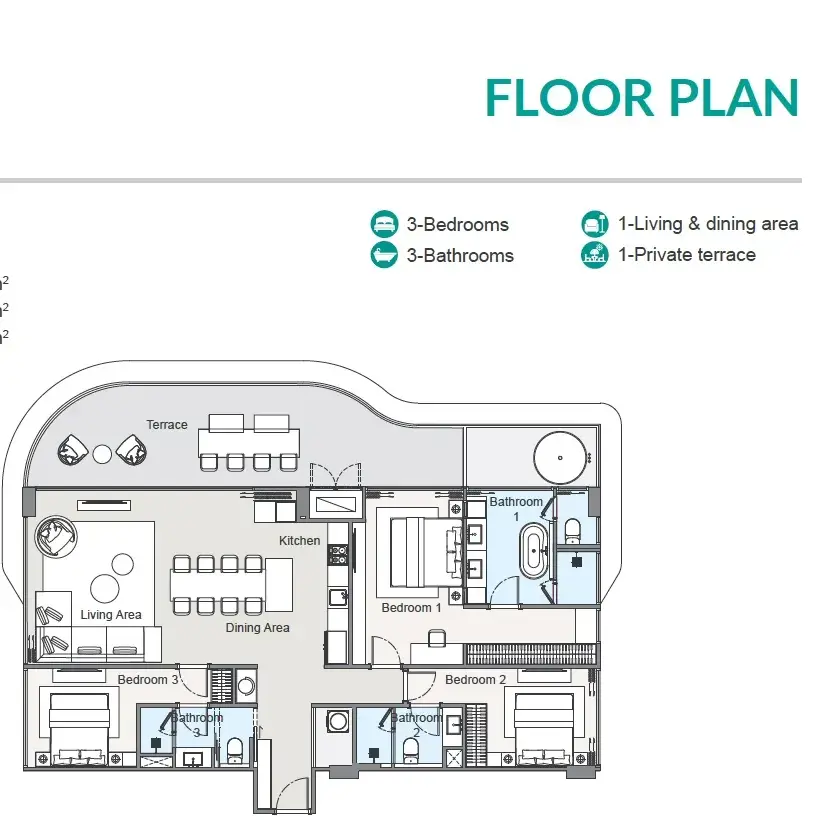 О квартире Laguna Beach Residences Bayside — апартаменты с 3 спальнями, 163-359 м²