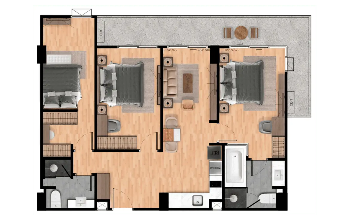 Rawayana — апартаменты с 3 спальнями, 104,4 м²
