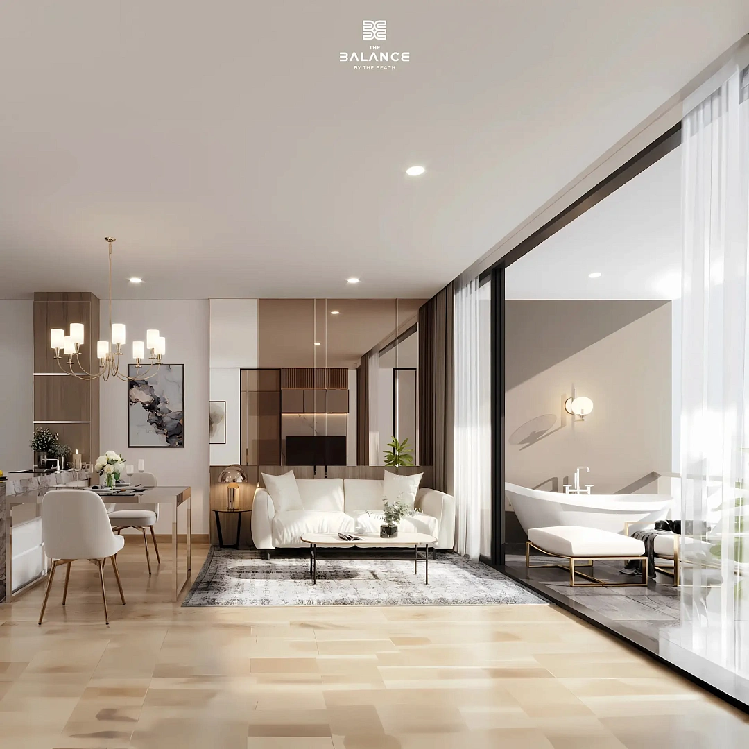 - Типы квартир: 1-спальные, 2-спальные и дуплексы с 1–2 спальнями, с современным интерьером, панорамными окнами и естественным освещением