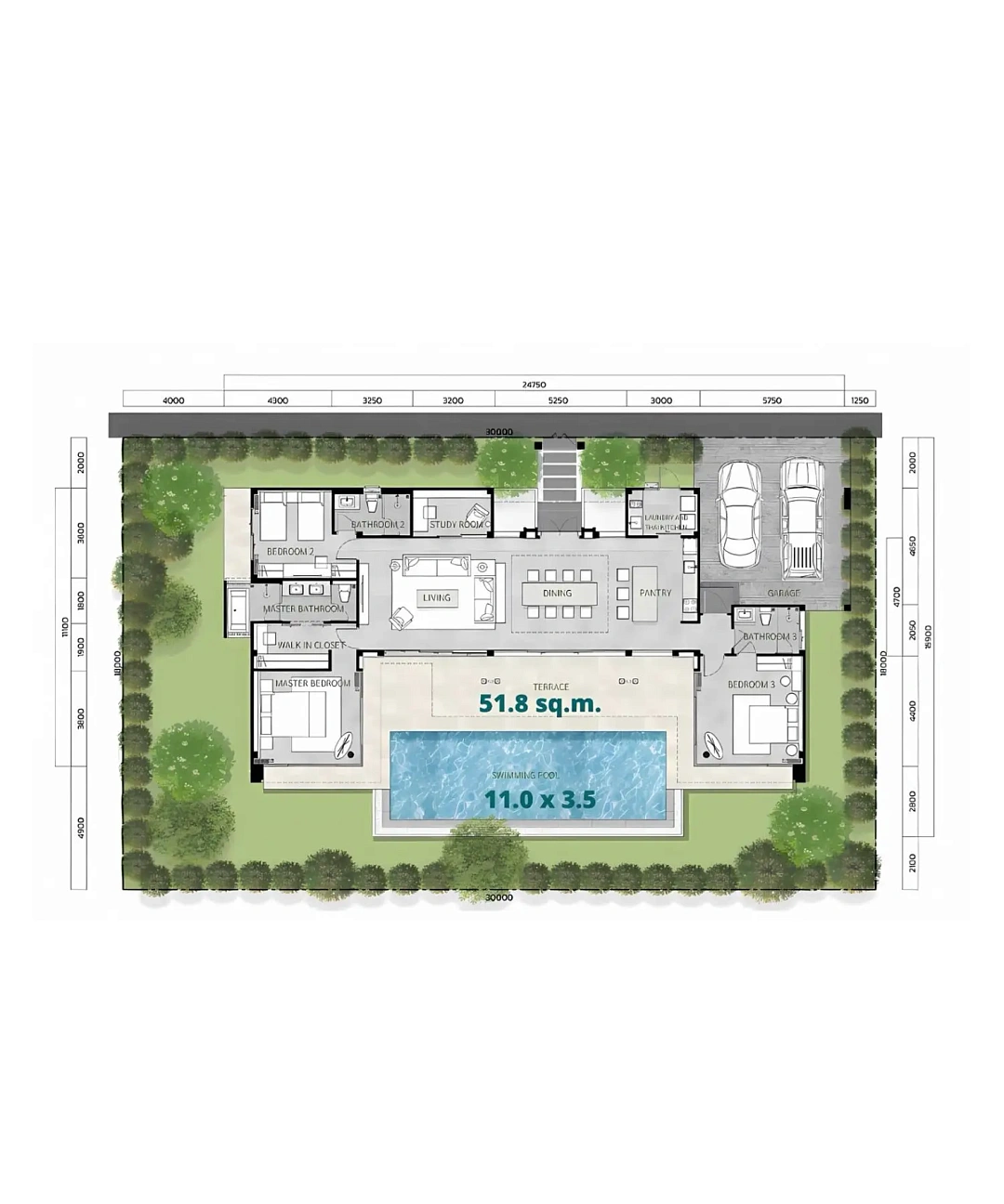 - Типы вилл: 36 современных вилл с 3–4 спальнями