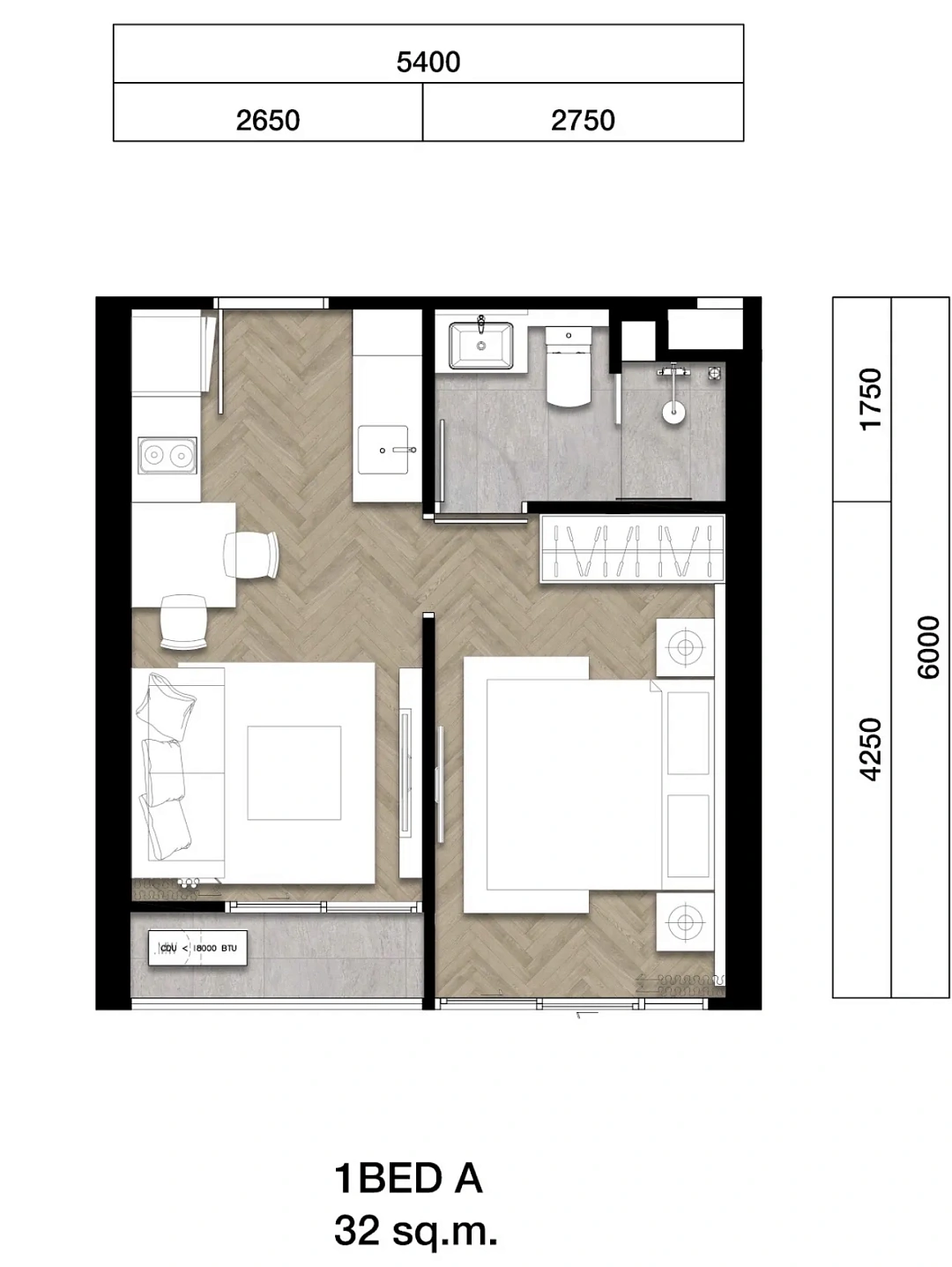 - Квартира с 1 спальней (тип A) — 350 000 бат