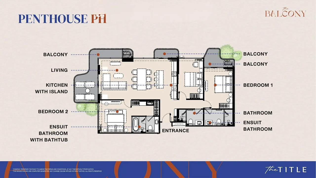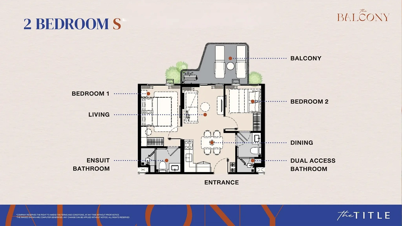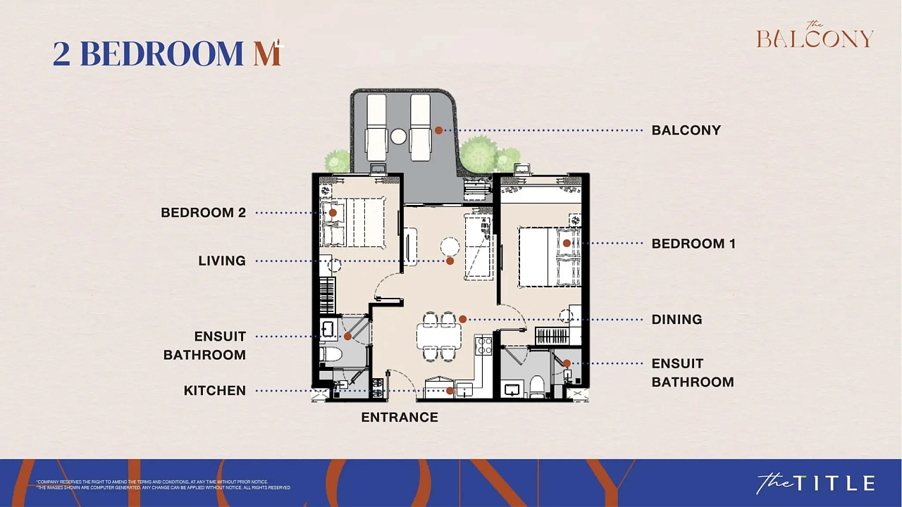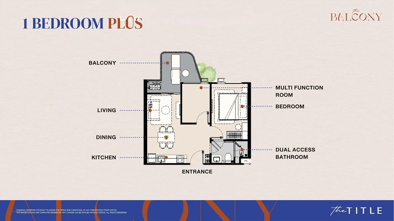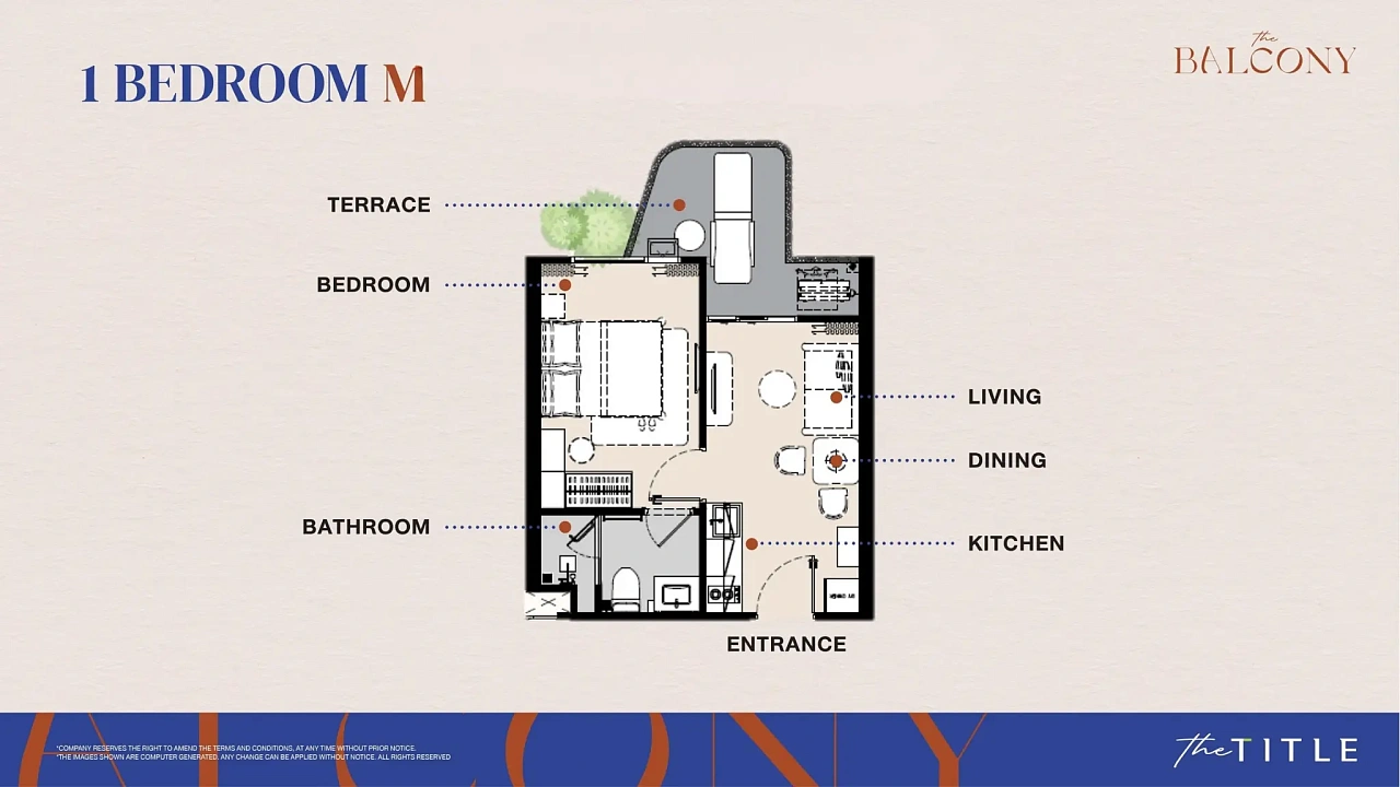 Цены на апартаменты в The Title Balcony стартуют от 150 бат за кв. м (до 190 бат за кв. м в зависимости от планировки и этажа). Сейчас действует специальная скидка пресейла: -100 000 бат на студии (односпальные), -200 000 бат на 1+ спальни, -300 000 бат на 2 спальни и -500 000 бат на пентхаусы. Дополнительно: 5% скидка при рассрочке или 10% при полной оплате сразу. Мебель — в подарок!