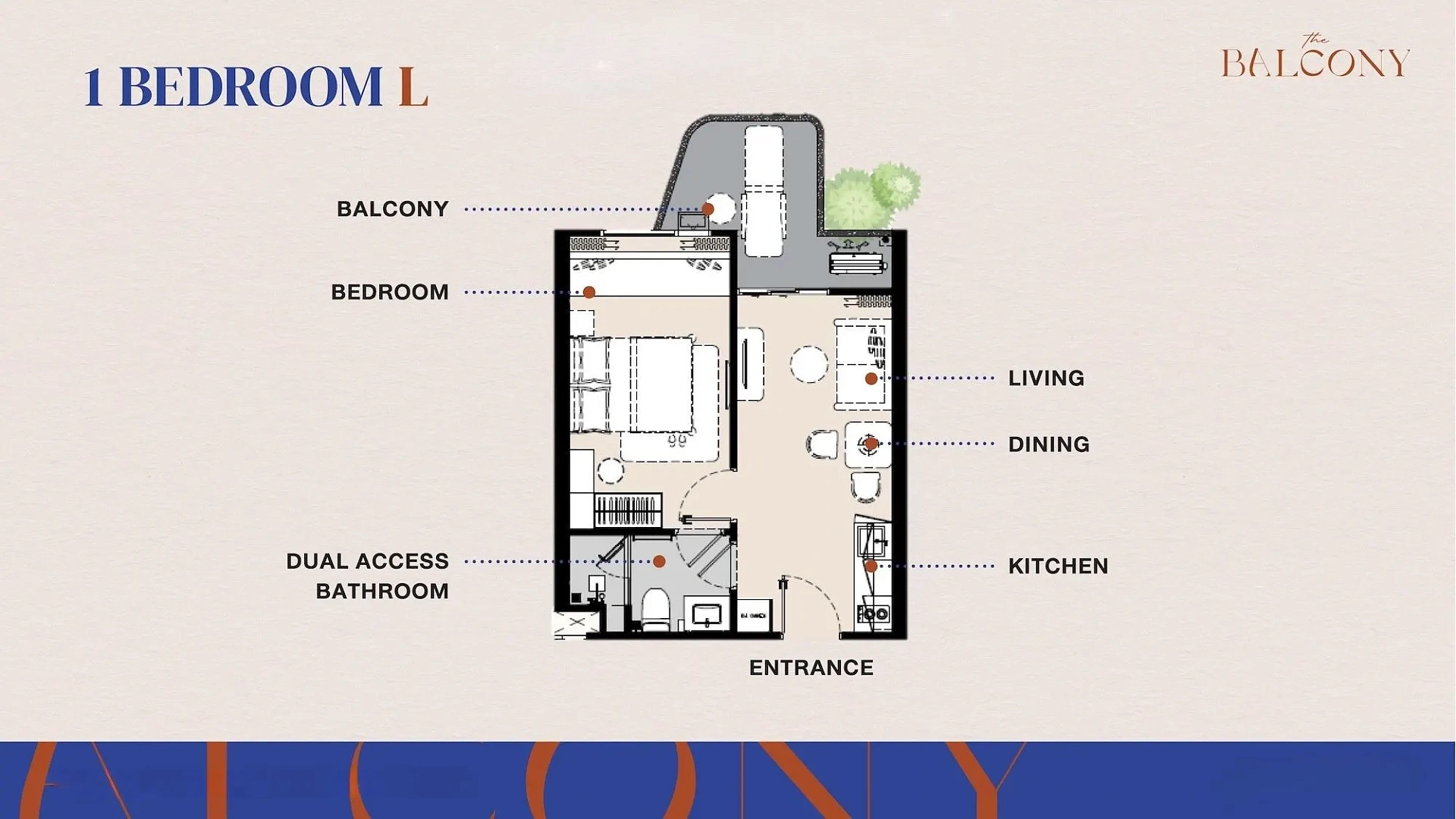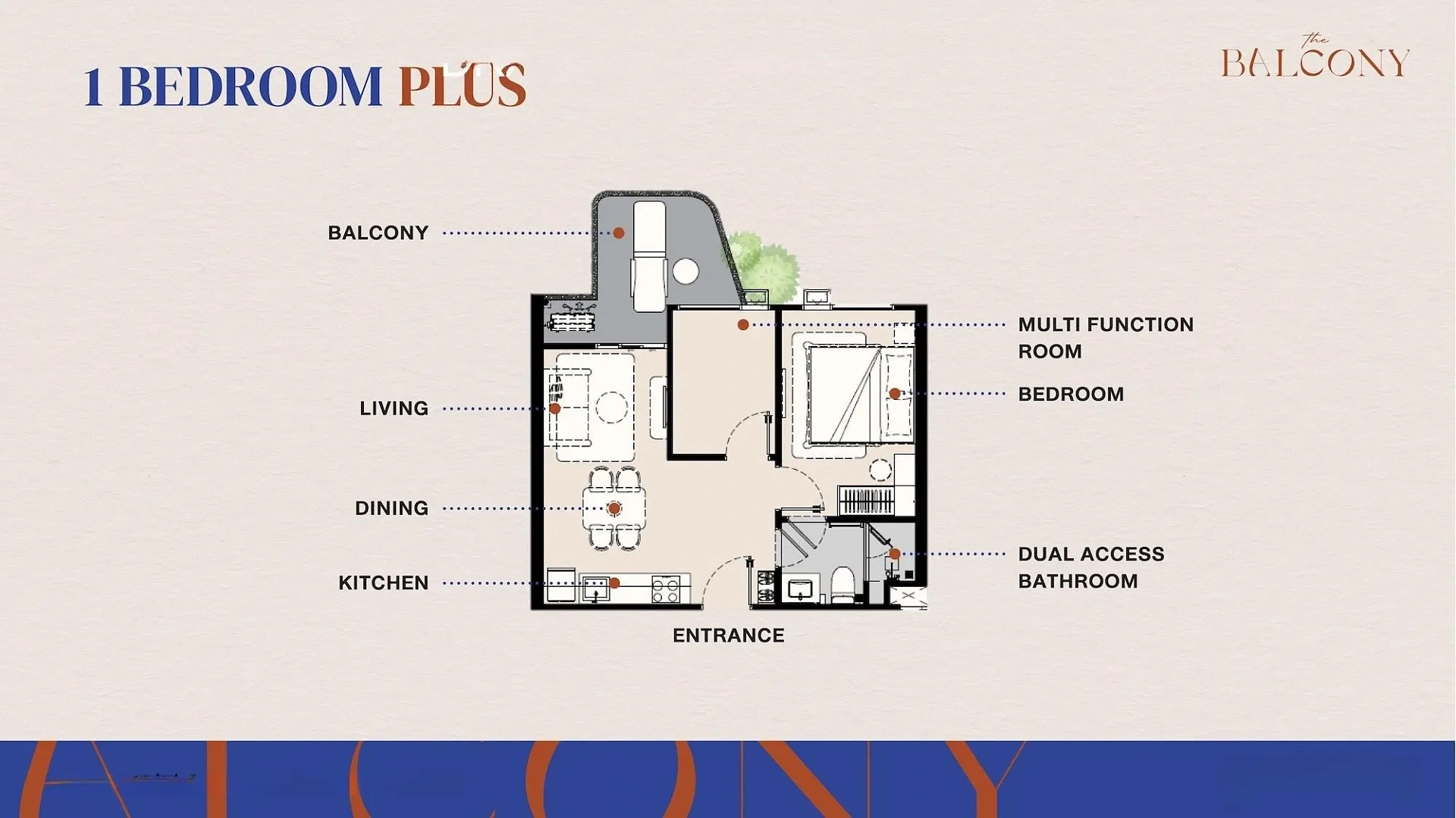 О квартире The Title Balcony — апартаменты с 1 спальней плюс, 37-47 м²