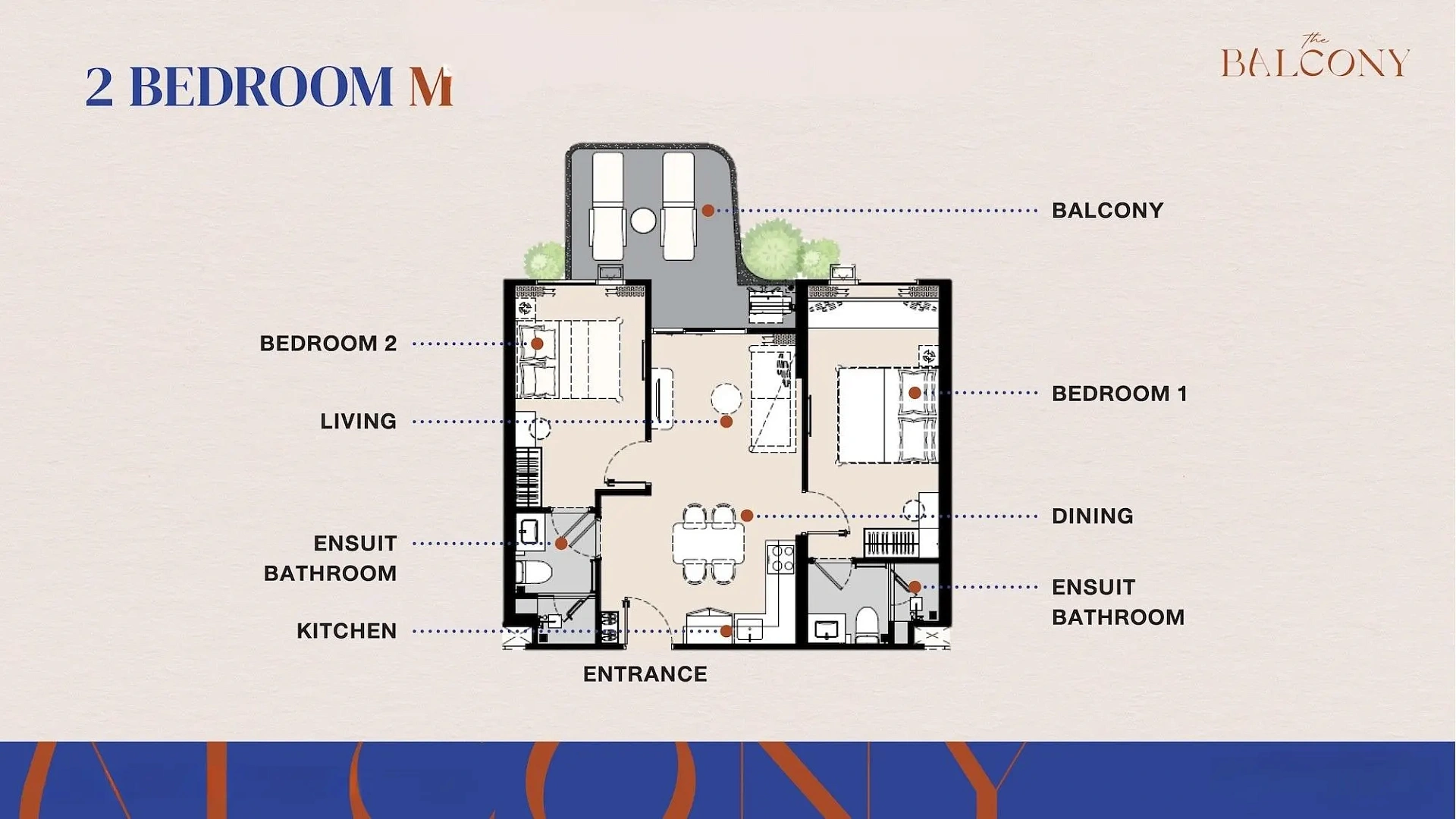 The Title Balcony — апартаменты с 2 спальнями, 50-70 м²