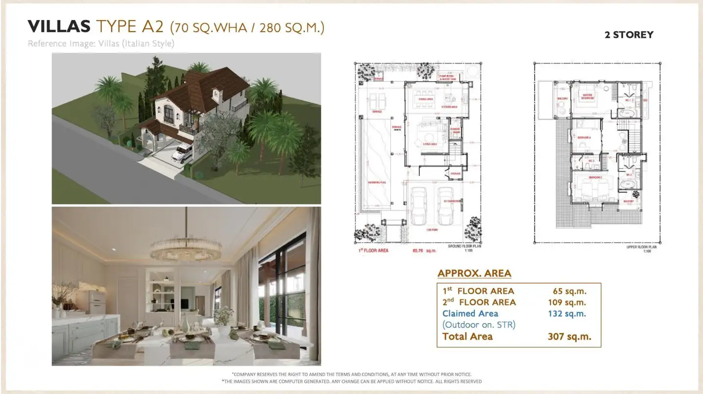 - Площадь вилл 3 bed: 307-377 м²