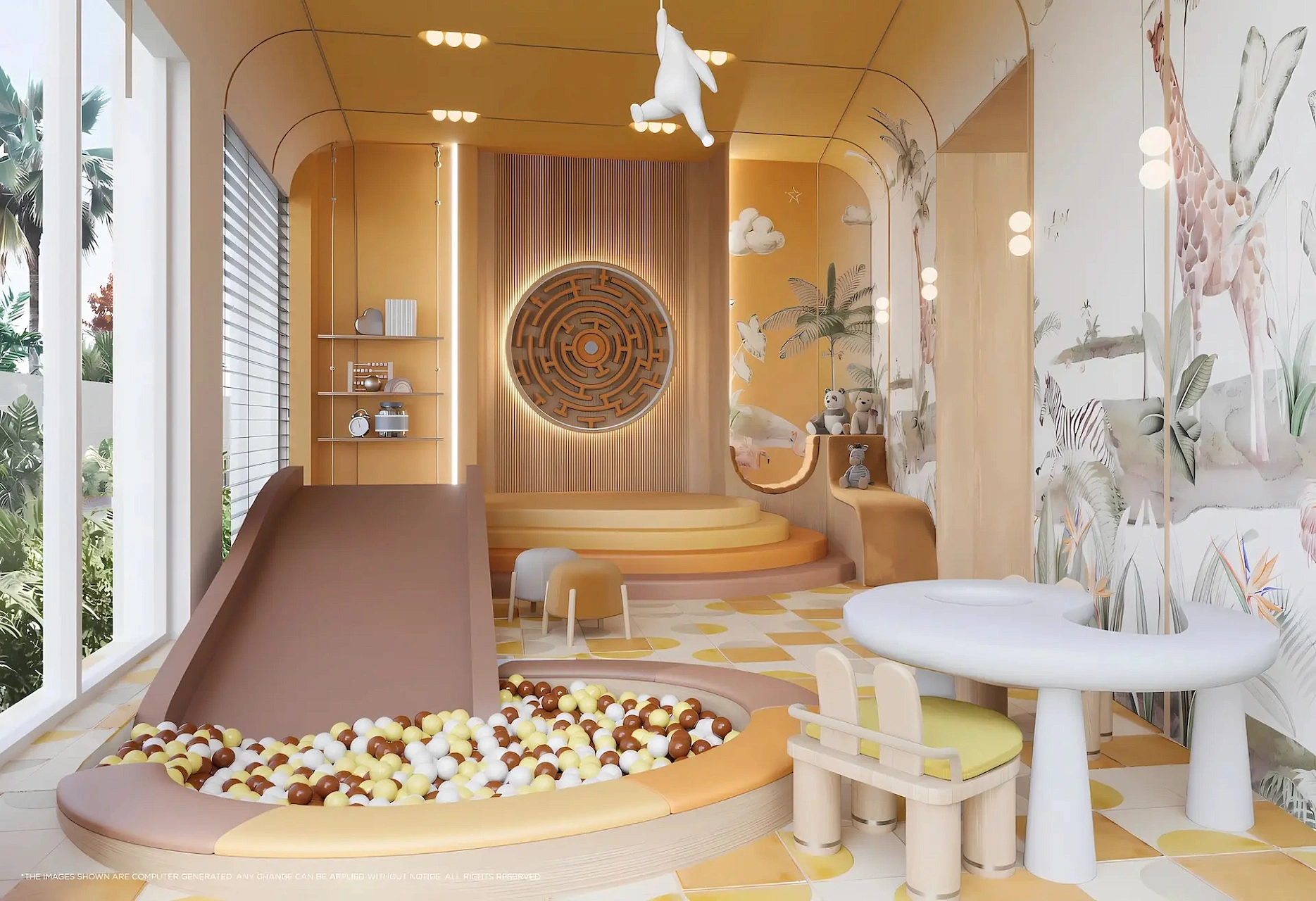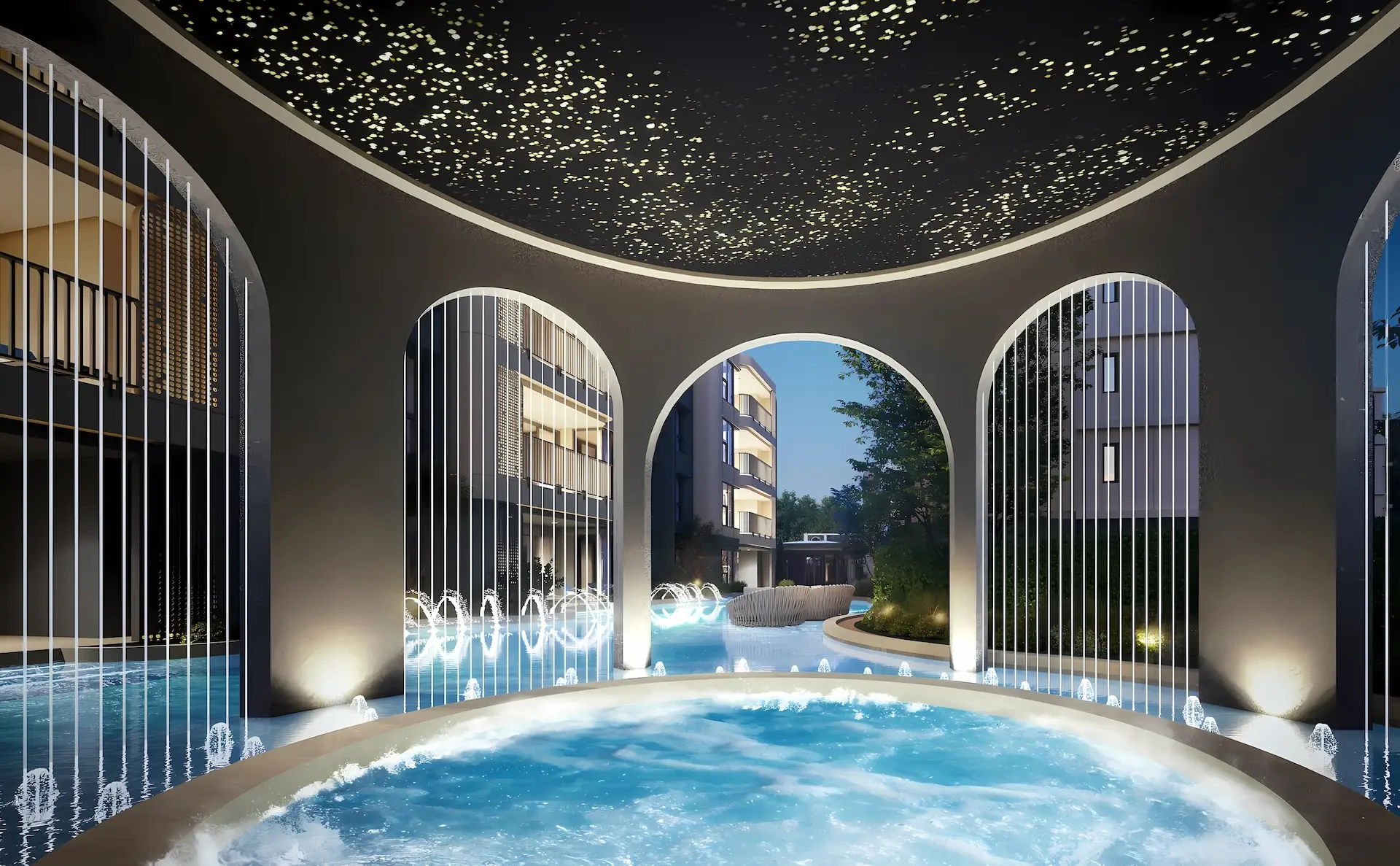 - Роскошная инфраструктура: Семь бассейнов, спа-центр, фитнес-зал, зона коворкинга, библиотека, детская зона, парковка и круглосуточная охрана.